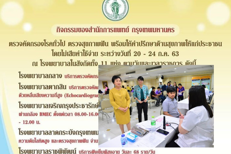 พล.ต.อ.อัศวิน ขวัญเมือง ผู้ว่าฯกทม.โพสต์ผ่านเฟซบุ๊ก “ผู้ว่าฯอัศวิน” ระบุ “โรงพยาบาล 11 แห่งในสังกัดกทม.ร่วมจัดกิจกรรมเนื่องในโอกาสวันเฉลิมพระชนมพรรษาพระบาทสมเด็จพระวชิรเกล้าเจ้าอยู่หัว 28 กรกฎาคม 2563 โดยเปิดให้บริการฟรี ตรวจคัดกรองโรคทั่วไป เบาหวาน ความดัน ต้อหิน ต้อกระจก มะเร็งเต้านม ตับอักเสบ ตรวจสุขภาพฟัน และคำปรึกษาด้านสุขภาพอื่นๆ แก่ประชาชน ระหว่างวันที่ 20-24 กรกฎาคม 2563 ตามวันและเวลาราชการ