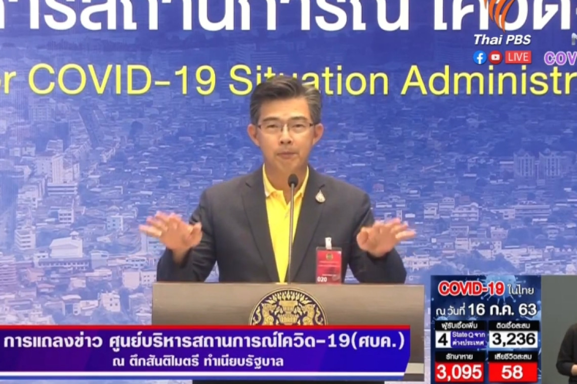 “ศบค.” เผย ติดเชื้อเพิ่ม 4 ราย กลับจาก “สหรัฐอาหรับเอมิเรตส์-อียิปต์-สหรัฐ” ขณะที่ “หมอทวีศิลป์” ย้ำ ขอโทษชาว “ระยอง-กทม.” พร้อมทบทวนหน้าที่ ดึงความเชื่อมั่นจากปชช.กลับมาอีกครั้ง เมื่อวันที่ 16 ก.ค.63 ที่ทำเนียบรัฐบาล นพ.ทวีศิลป์ วิษณุโยธิน โฆษกกระทรวงสาธารณสุข ในฐานะโฆษกศูนย์โรคติดเชื้อไวรัสโคโรนา 2019 (โควิด-19) หรือ ศบค. แถลงว่า ขอโทษพี่น้องประชาชนชาวจ.ระยอง และกรุงเทพฯ บางส่วน ในเรื่องที่เคยรายงานไป ที่ผ่านมาสร้างความไม่สบายใจให้ตน ทำให้ต้องพัฒนา และจัดการชุดข้อมูล ซึ่งในช่วงที่รับทราบข้อมูลขณะนั้น เป็นช่วงเวลาสั้น ๆ ทำให้เกิดความไม่เรียบร้อยแล้วรายงานไป ทำให้เกิดความไม่สบายใจ และต้องหาข้อมูล ซึ่งตนได้ทบทวนหน้าที่ของตนเอง เพราะเป็นคนที่ต้องหาข้อมูลให้ประชาชน โดยละเอียด และดึงความเชื่อมั่นทุกอย่างให้กลับมาอยู่ตรงนี้ ขอทำหน้าที่ของตัวเองให้หนักยิ่งขึ้น เพื่อตอบสนองสภาพการณ์ที่เปลี่ยนแปลงไปตลอดเวลา ซึ่งตนจะรายงานไปอีกสักระยะ จนกว่าเหตุการณ์จะคลี่คลาย ต้องขอขอบคุณสถานเอกอัครราชทูตสาธารณรัฐอียิปต์ประจำประเทศไทย ที่ได้ออกแถลงการณ์เรื่องการรายงานข่าวการติดเชื้อไวรัสโคโรน่า 2019 ของสมาชิกลูกเรือทหารชาวอียิปต์ นพ.ทวีศิลป์ กล่าวว่า สำหรับสถานการณ์ประจำวันนี้ พบผู้ป่วยใหม่ 4 ราย อยู่ในสถานที่กักกันของรัฐ ทำให้มีตัวเลขผู้ป่วยสะสมอยู่ที่ 3,236 ราย หายป่วยแล้ว 3,095 ราย ไม่มีผู้เสียชีวิตเพิ่ม ทำให้มีผู้เสียชีวิตคงที่ 58 ราย รักษาอยู่ในโรงพยาบาล 83 ราย สำหรับผู้ป่วยใหม่ 4 รายนั้น 2 รายแรก เป็นชายไทย อายุ 33 ปี อาชีพรับจ้าง และหญิงไทย อายุ 25 ปี อาชีพ พนักงานนวด เดินทางมาจากสาธารณรัฐอาหรับเอมิเรตส์ถึงไทยวันที่ 2 ก.ค. เข้าสถานที่กักกันของรัฐที่ จ.ชลบุรี ตรวจหาเชื้อวันที่ 13 ก.ค. ตรวจพบว่ามีเชื้อ แต่ไม่มีอาการ รายที่ 3 เป็นนักศึกษาชายไทย อายุ 27 ปี เดินทางมาจากประเทศอียิปต์ ถึงไทยวันที่ 8 ก.ค. เข้าสถานที่กักกันของรัฐ จ.ชลบุรี และตรวจหาเชื้อวันที่ 11 ก.ค. พบว่าติดเชื้อ ไม่แสดงอาการ และรายที่ 4 เป็นหญิงไทยอายุ 51 ปี เดินทางจากสหรัฐอเมริกาถึงไทยวันที่ 11 ก.ค. เข้าสถานที่กักกันของรัฐ ที่กรุงเทพฯ เริ่มแสดงอาการวันที่ 10 ก.ค. มีไข้ ปวดศรีษะ ไม่ได้กลิ่น ตรวจหาเชื้อวันที่ 15 ก.ค. พบว่าติดเชื้อ