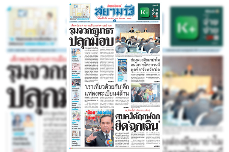 หน้า 1 หนังสือพิมพ์สยามรัฐรายวัน ฉบับวันจันทร์ที่ 20 ก.ค.พ.ศ.2563 รุมจวกธนาธรปลุกม็อบ https://siamrath.co.th/n/170766 ช่องส่องผีขมาย่าโมคนโคราชโห่ฮาเรนนี่พูดชื่อ"จังหวัด"ผิด https://siamrath.co.th/n/170769 "เราเที่ยวด้วยกัน"คึกแห่ลงทะเบียน 4 ล้าน https://siamrath.co.th/n/170768