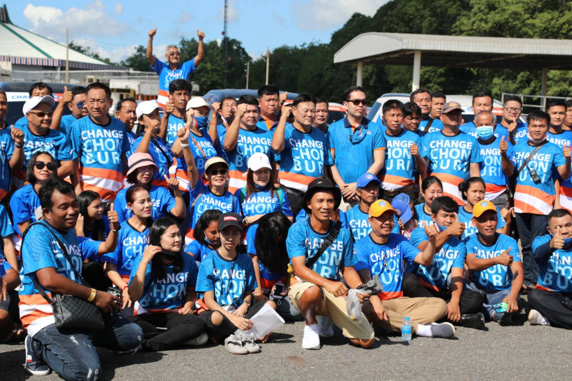 ที่ลานกิจกรรมสมาคมกลุ่มอาชีพการเกษตรชลบุรี ต.หนองชาก อ.บ้านบึง จ.ชลบุรี “นายกเป้า” นายจิรวุฒิ สิงห์โตทอง หัวหน้ากลุ่ม Change Chonburi ว่าที่ผู้สมัครนายกอบจ.ชลบุรี พร้อมด้วย นายพายุ เนื่องจำนงค์ แกนนำและคณะทำงานกลุ่ม Change Chonburi พร้อมทีมงานว่าที่ผู้สมัคร ส.อบจ.ชลบุรี ร่วมกันจัดกิจกรรม “แรลลี่การกุศล” เพื่อนำเงินรายได้ไปมอบให้ชมรมคนพิการบ่อทอง และนำเงินไปมอบให้คณะครูโรงเรียนบ้านธรรมรัตน์ เพื่อใช้เป็นกองทุนโครงการอาหารกลางวันเด็กนักเรียน โดยมีแนวร่วมเป็นแกนนำพลังมวลชนประมาณกว่า 300 คน จากหลายอำเภอในจังหวัดชลบุรี อาทิ อ.เมือง อ.ศรีราชา อ.บ้านบึง อ.พนัสนิคม อ.หนองใหญ่ อ.บ่อทอง อ.บางละมุง อ.สัตหีบ อ.พานทอง อ.เกาะจันทร์ ได้สวมเสื้อสีน้ำเงินแถบส้ม สกรีนอักษรที่เสื้อว่า “Change Chonburi” นำรถยนต์ส่วนตัวติดสติ๊กเกอร์ Change Chonburi จำนวนกว่า 130 คัน มาร่วมกิจกรรมแรลลี่การกุศลในครั้งนี้ โดยเส้นทางที่ผู้จัดได้ใช้ในการเดินทางเริ่มตั้งแต่ ออกจากสมาคมกลุ่มอาชีพการเกษตรชลบุรี ใช้เส้นทางถนนสายบ้านบึง-เนินโมก ผ่านสี่แยกหนองเสม็ด เลี้ยวซ้ายเข้าไปที่ อ.บ่อทอง ระยะทางประมาณ 24 กิโลเมตร ขบวนรถจะวิ่งเคลื่อนขบวนไปที่จุดนัดพบบริเวณเต็นท์ข้างห้องประชุมที่ว่าการอำเภอบ่อทอง จังหวัดชลบุรี โดยมี ชมรมคนพิการบ่อทองจำนวนกว่า 100 คน คอยให้การต้อนรับ