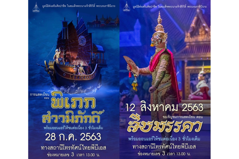 เนื่องในวาระสองโอกาสมหามงคลสมัย มูลนิธิส่งเสริมศิลปาชีพ ในสมเด็จพระนางเจ้าสิริกิติ์ พระบรมราชินีนาถ จึงร่วมเฉลิมฉลองโอกาสมหามงคลนี้ เชิญชวนคนไทยร่วมชื่นชมความงามของนาฏศิลป์ชั้นสูง ซึ่งเป็นมรดกทางวัฒนธรรมอันล้ำค่าของชาติ ในบันทึกการแสดงโขนมูลนิธิส่งเสริมศิลปาชีพฯ ตอน พิเภกสวามิภักดิ์ และ ตอน สืบมรรคา ผ่านหน้าจอทางสถานีโทรทัศน์ไทยพีบีเอส ช่องหมายเลข 3 พร้อมออนแอร์ให้ชมต่อเนื่อง 3 ชั่วโมงเต็ม ตั้งแต่เวลา 13.00-16.00 น.
