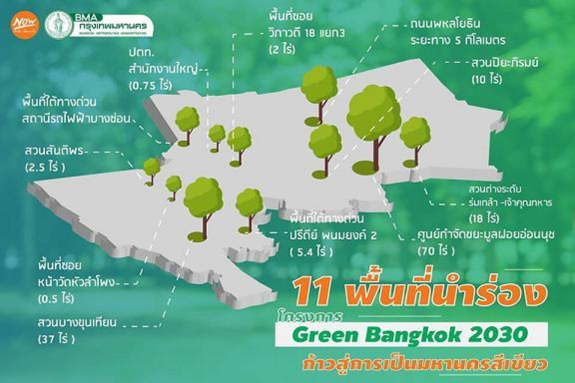 พล.ต.อ.อัศวิน ขวัญเมือง ผู้ว่าฯกทม.โพสต์ผ่านเฟซบุ๊กระบุ ตั้งเป้าเพิ่มพื้นที่สีเขียวให้คนกรุงฯ 10 ตารางเมตรต่อคน ภายใต้โครงการ Green Bangkok 2030 ปัจจุบัน กรุงเทพฯ มีพื้นที่สีเขียว 6.99 ตารางเมตรต่อประชากร 1 คน ซึ่งตามเกณฑ์มาตรฐานขององค์การอนามัยโลกนั้น กำหนดให้แต่ละเมืองควรมีพื้นที่สีเขียวในอัตรา 9 ตารางเมตรต่อคน แม้ว่ากรุงเทพฯ จะยังไม่ถึงเกณฑ์มาตรฐาน แต่เราก็พัฒนามาอย่างต่อเนื่อง พร้อมตั้งเป้าหมายว่าภายในปี 2573 กทม.จะเพิ่มพื้นที่สีเขียวให้ได้ถึง 10 ตารางเมตรต่อคน จากความร่วมมือของทุกภาคส่วนและภาคีเครือข่ายภายใต้โครงการ GREEN BANGKOK 2030 สำหรับ โครงการGREEN BANGKOK 2030 เป็นการวางแผนและมองพื้นที่สีเขียวในกรุงเทพฯ ไปข้างหน้าอีก 10 ปี ว่า การใช้ประโยชน์ที่ดินแต่ละย่านจะเป็นแบบไหน พร้อมทั้งได้ทำการสำรวจพื้นที่ว่าง ที่รกร้าง และที่ดินที่ไม่มีการใช้ประโยชน์เพื่อนำมาพัฒนาเป็นสวนหย่อม สวนสาธารณะ และสวนป่า โดยเริ่มนำร่อง (ระยะที่ 1) แล้ว 11 โครงการ เช่น สวนปิยะภิรมย์ เขตบางกะปิ พื้นที่ 10 ไร่ ซึ่งเปิดให้บริการแล้ว และที่เป็นรูปเป็นร่างใกล้จะเสร็จสมบูรณ์ เช่น สวนสันติพร เขตพระนคร พื้นที่ 2.5 ไร่ คาดว่าจะเสร็จภายในเดือนส.ค.63 สวนสาธารณะบริเวณทางแยกต่างระดับถนนร่มเกล้ากับถนนเจ้าคุณทหารเขตลาดกระบัง พื้นที่ 18 ไร่ คาดว่าจะเสร็จในเดือนก.ย.63 และสวนสาธารณะภายในสถานีพัฒนาที่ดินกรุงเทพมหานคร (ถนนบางขุนเทียน - ชายทะเล) เขตบางขุนเทียน พื้นที่ 37 ไร่ ซึ่งคาดว่าจะแล้วเสร็จในเดือน ก.พ.64 กรุงเทพฯ จะเป็นเมืองสีเขียว สิ่งแวดล้อมดี และไปถึงเป้าหมายได้สำเร็จ ต้องได้รับความร่วมมือจากประชาชนทุกคน ซึ่งหากท่านยังมีที่ดินที่ยังไม่ได้ใช้ประโยชน์และประสงค์จะมอบให้กทม.นำไปพัฒนาเป็นพื้นที่สีเขียว แจ้งความประสงค์ได้ที่สำนักสิ่งแวดล้อม กทม.2 (ดินแดง)