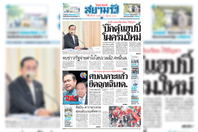 หน้า 1 หนังสือพิมพ์สยามรัฐรายวัน ฉบับวันพฤหัสบดีที่ 23 ก.ค.พ.ศ.2563