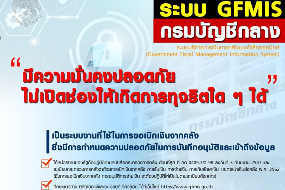 กรมบัญชีกลางกำชับส่วนราชการเบิกจ่ายเงินผ่านระบบ GFMIS อย่างเคร่งครัด เพื่อป้องกันการทุจริตในหน่วยงาน ระบุเจ้าหน้าที่รัฐยักยอกเงินส่วนราชการ เกิดจากตัวบุคคลไม่ใช่ระบบ