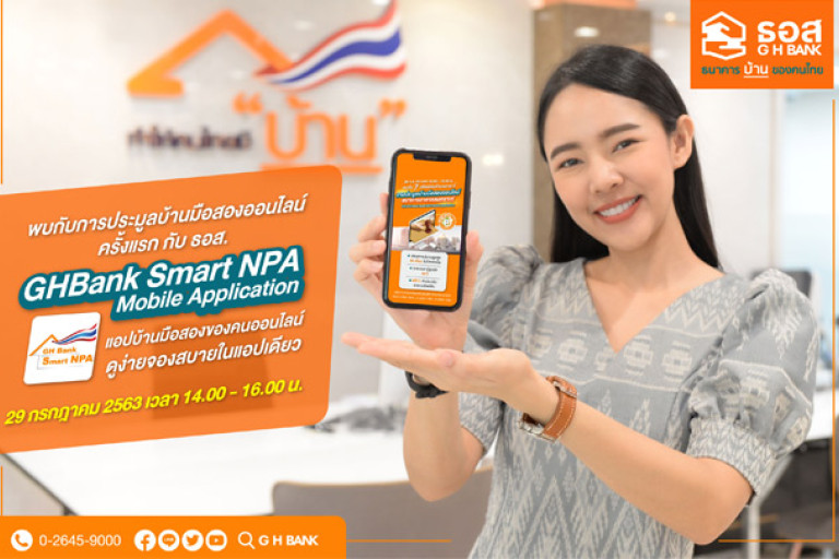 ธนาคารอาคารสงเคราะห์ (ธอส.)อำนวยความสะดวกให้ลูกค้าที่ต้องการมีบ้านยุค New Normal จัดประมูลบ้านมือสองออนไลน์ครั้งแรกผ่าน Application : G H Bank Smart NPA โดยลูกค้าสามารถลงทะเบียนเข้าร่วมประมูลออนไลน์ได้ตั้งแต่วันนี้จนถึงวันที่ 29 กรกฎาคม 2563 เวลา 12.00 น. และเริ่มต้นการประมูลในวันเดียวกัน เวลา 14.00–16.00 น. พบกับ 7 ทรัพย์เด่นทำเลดี ราคาเริ่มต้นประมูลลดสูงสุด 20% จากราคาปกติ ผู้ชนะประมูลรับสิทธิ์ผ่อนดาวน์ 0% นานสูงสุด 60 เดือน หรือเทดาวน์แล้วยื่นกู้ทันทีผ่อนได้นานสูงสุด 40 ปี และ ฟรีค่าประเมินราคาทรัพย์สินอีกด้วย