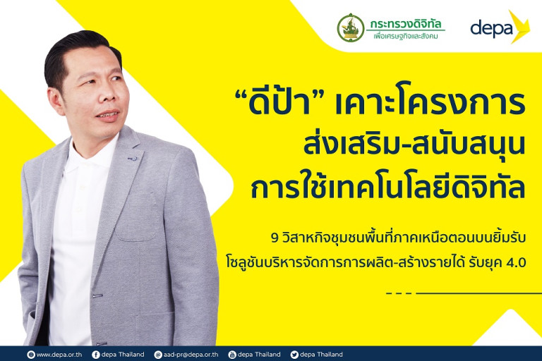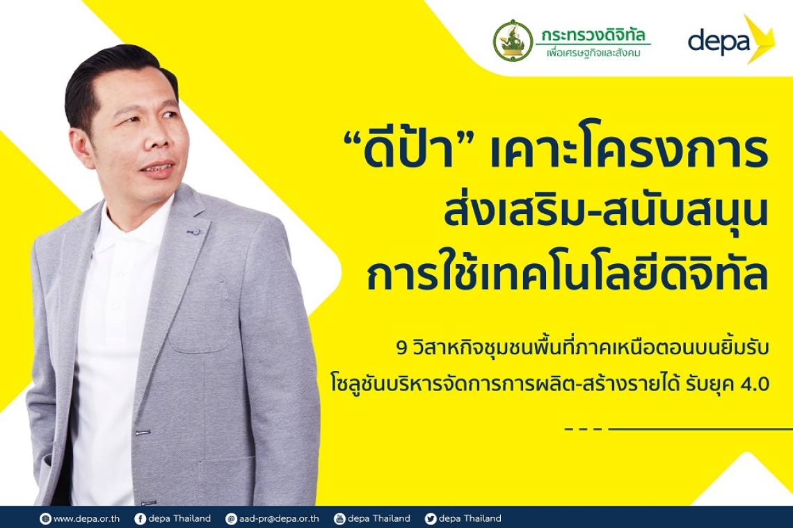 ดร.ณัฐพล นิมมานพัชรินทร์ ผู้อำนวยการใหญ่ สำนักงานส่งเสริมเศรษฐกิจดิจิทัล หรือ ดีป้า เปิดเผยว่า ที่ผ่านมา ดีป้า ดำเนินการส่งเสริมและสนับสนุนให้เกิดการประยุกต์ใช้เทคโนโลยีและนวัตกรรมดิจิทัลอย่างต่อเนื่องในทุกมิติ โดยเฉพาะอย่างยิ่งภาคสังคม ชุมชน และท้องถิ่นทั่วประเทศ ผ่านการเลือกใช้เทคโนโลยีดิจิทัลจากผู้ประกอบการด้านดิจิทัล (Digital Provider) ที่ขึ้นทะเบียนกับสำนักงานฯ โดยในปี 2563 ดีป้า ตั้งเป้าที่จะส่งเสริม และสนับสนุนชุมชนในชนบทประยุกต์ใช้เทคโนโลยีดิจิทัลจำนวน 193 ชุมชน ล่าสุดที่ประชุมคณะอนุกรรมการพิจารณาการส่งเสริมและสนับสนุน ครั้งที่ 7/2563 มีมติเห็นชอบโครงการที่ขอรับการส่งเสริมและสนับสนุนผ่านมาตรการช่วยเหลือหรือการอุดหนุนการประยุกต์ใช้เทคโนโลยีและนวัตกรรมดิจิทัลในชนบท (depa Digital Transformation Funds for Community) ในพื้นที่ภาคเหนือตอนบน ประกอบด้วยจังหวัดเชียงใหม่ ลำปาง และน่าน จำนวน 9 โครงการ ประกอบด้วย 1. โครงการประยุกต์เทคโนโลยีดิจิทัลเพื่อการเกษตรในรูปแบบโรงเพาะเห็ดอัจฉริยะ โดยวิสาหกิจชุมชนกลุ่มเพาะเห็ดเศรษฐกิจบ้านป่าเปา จังหวัดเชียงใหม่ 2. โครงการระบบให้น้ำอัจฉริยะและพลังงานทดแทนเพื่อโรงเรือนเพาะเห็ด โดยวิสาหกิจชุมชนกลุ่มเห็ดปลอดสาร ตำบลเวียงตาล อำเภอห้างฉัตร จังหวัดลำปาง 3. โครงการพัฒนาระบบการบริหารจัดการน้ำอัจฉริยะด้วย IoT สำหรับไร่มะนาว โดยวิสาหกิจชุมชนผู้ปลูกมะนาวบ้านยอด อำเภอสองแคว จังหวัดน่าน 4. โครงการโรงอบพลังงานแสงอาทิตย์วิสาหกิจเกษตรธรรชาติลีซูโดยวิสาหกิจชุมชนเกษตรธรรมชาติลีซู อำเภอเวียงแหง จังหวัดเชียงใหม่ 5. โครงการโดรนเพื่อการเกษตรสมาร์ทฟาร์มแม่วาง โดยวิสาหกิจชุมชนผู้ปลูกข้าวโพดหวานสมาร์ทฟาร์ม อำเภอแม่วาง จังหวัดเชียงใหม่ 6. โครงการโดรนเพื่อการเกษตรเกษตรกรฝาง โดยวิสาหกิจชุมชนผู้ปลูกข้าวโพดหวานสมาร์ทฟาร์ม อำเภอฝาง จังหวัดเชียงใหม่ 7. โครงการแอปพลิเคชันส่งเสริมการปลูก การเกษตรที่มีมาตรฐานในยุคดิจิทัล โดยวิสาหกิจชุมชนผักปลอดภัยจากสารพิษบ้านไผ่งาม อำเภอเวียงสา จังหวัดน่าน 8. โครงการพัฒนาระบบบริหารจัดการการปลูกและตลาดเกษตรกร เพื่อการเกษตรในยุคดิจิทัล โดยวิสาหกิจชุมชนพืชผักและผลไม้อบแห้งบ้านแหน 2 อำเภอท่าวังผา จังหวัดน่าน 9. โครงการระบบบริหารจัดการไข่ไก่เพื่อกลุ่มวิสาหกิจชุมชน โดยวิสาหกิจชุมชนกลุ่มแปรรูปผลผลิตเกษตรกรบ้านนาหึก อำเภอแม่ริม จังหวัดเชียงใหม่ "ดีป้า มีหน้าที่หลักในการส่งเสริมและสนับสนุนให้ชุมชนต่อยอดภูมิปัญญาท้องถิ่นด้วยการประยุกต์ใช้เทคโนโลยีและนวัตกรรมดิจิทัลท