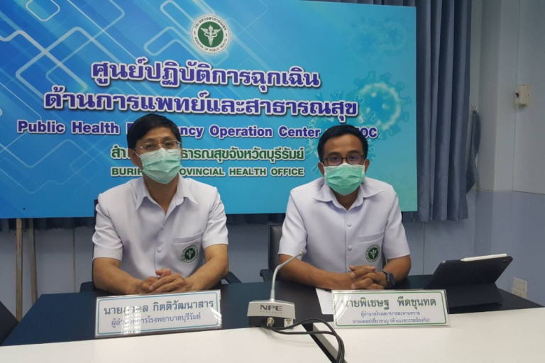 เมื่อเวลา 18.30 น. (1 ส.ค.63) นายแพทย์ภูวดล กิตติวัฒนาสาร ผู้อำนวยการโรงพยาบาลบุรีรัมย์ พร้อมด้วย นายแพทย์พิเชษฐ พืดขุนทด นายแพทย์เชี่ยวชาญด้านเวชกรรมป้องกัน คณะกรรมการโรคติดต่อจังหวัดบุรีรัมย์ ร่วมกันแถลงข่าวสถานการณ์ผู้ติดเชื้อยืนยันรายใหม่ จ.บุรีรัมย์ รายที่ 14 โดยผู้ติดเชื้อรายนี้เป็นเพศชาย สัญชาติเซอร์เบีย อายุ 29 ปี อาชีพนักฟุตบอล กักตัวใน STATE QUARANTINE (BRIC BOX HOTEL) โดยผู้ป่วยรายดังกล่าว เดินทางเข้าสู่จังหวัดบุรีรัมย์เมื่อ วันที่ 19 ก.ค. 63 เวลาประมาณ 09.00 น. โดยเครื่องบินเช่าเหมาลำ จำนวน 3 ราย เป็นนักฟุตบอล 2 ราย นักกายภาพบำบัด 1 ราย ได้รับการตรวจคัดกรองที่ท่าอากาศยานดอนเมือง ตามขั้นตอนทุกรายไม่มีอาการผิดปกติ และผลตรวจ COVID-19 (Day 0) ไม่พบสารพันธุกรรมของไวรัสโคโรนา สายพันธุ์ใหม่ 2019 จากนั้นในเวลาประมาณ 13.00 น. ได้เดินทาง