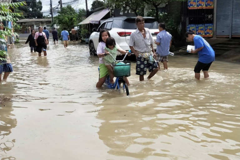 ฝนตกหนักตลอดทั้งคืน เกิดน้ำเอ่อท้นคลองนาฏศิลป์เข้าท่วมบ้านเรือน จำนวน 6 หลังคาเรือน เจ้าหน้าที่งานป้องกันและบรรเทาสาธารณภัยเทศบาลเมืองท่าช้าง ต้องเร่งอพยพผู้สูงอายุออกมาอยู่ในพื้นที่ที่ปลอดภัย
