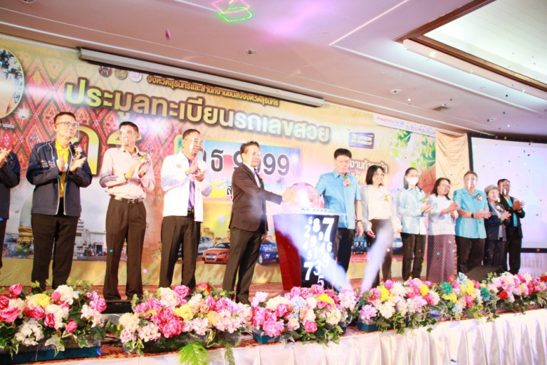 นายกฤติกร ชาวอ่างทอง ขนส่งจังหวัดสุรินทร์ กล่าวว่า การประมูลหมายเลขทะเบียนรถ เป็นการดำเนินการตามพระราชบัญญัติรถยนต์ (ฉบับที่ 12) พ.ศ.1546 ซึ่งกำหนดหลักการให้มีการนำหมายเลขทะเบียนรถที่เป็นที่ต้องการหรือเป็นที่นิยมของประชาชน ออกประมูลเป็นการทั่วไป จำนวน 301 หมายเลข จังหวัดสุรินทร์ได้จัดการประมูลหมายเลขทะเบียนรถมาแล้ว จำนวน 6ครั้ง รวมรายได้จากการประมูล เป็นจำนวนเงินทั้งสิ้น 110,158,330 ล้านบาท (หนึ่งร้อยสิบล้านหนึ่งแสนห้าหมื่นสองพันสองร้อยสามสิบบาทถ้วน)