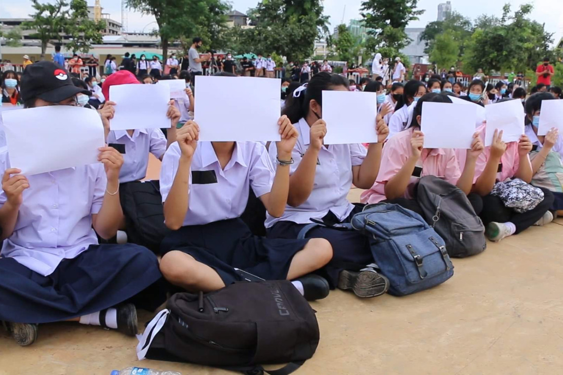 เมื่อเวลา 17.30 น.วันที่ 17 ส.ค.63 ที่สวนรัชดานุสรณ์ ถ.ประชาสโมสร ด้านหน้าศาลากลางจังหวัดขอนแก่น ได้มีนักเรียนระดับชั้นมัธยมศึกษาตอนต้นและตอนปลาย จากโรงเรียนต่างๆในเขตเทศบาลนครขอนแก่น และพื้นที่ใกล้เคียงกว่า 1,000 คน ในนาม “ภาคี นักเรียน kkc ทวงเสรีภาพคืน” ได้รวมกันกำหนดจัดกิจกรรมเชิงสัญลักษณ์ด้วยการผูกโบว์สีขาวที่ข้อมือ ที่ผมและที่กระเป๋า พร้อมทั้งการใช้รถขยายเสียงเปิดเวทีปราศรัย โดยทีแกนนำนักเรียน ได้ให้ทุกคนเขียนระบายความรู้สึกที่ป้ายผ้า ซึ่งหลายคนนั่งลงเขียน อย่าจาบจ้วงนักเรียน, โบว์ขาวไม่ผิด, ผอ.โงเรียนหนูปล่อยข้อมูลเด็ก,หยุดคุกคามนักรียน,ประชาชน,ครูเป็นสลิ่ม และอีกหลากหลายข้อความตามที่ได้แสดงออกมา