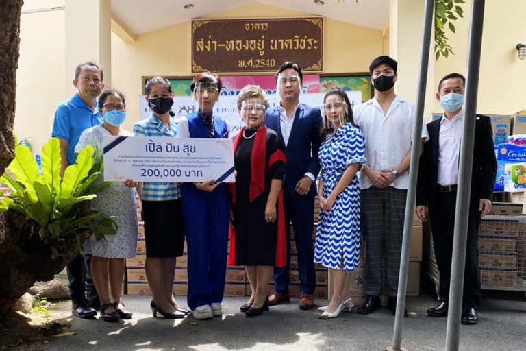 เปิ้ล-หัทยา วงษ์กระจ่าง กล่าวว่า วันนี้ตนถือเป็นส่วนหนึ่งของโครงการ "เปิ้ลปันสุข" มาให้ความช่วยเหลือเด็กพิการ ที่ผ่านมาเคยนำสิ่งของมาบริจาคให้บ้านนนทภูมิและสถานสงเคราะห์ในละแวกเดียวกันอยู่บ่อยครั้ง แต่ในช่วงสถานการณ์โควิด-19 ทราบว่ามีคนมาบริจาคกันน้อยลง เนื่องจากมีความระมัดระวังเรื่องระยะห่างทางสังคมและลดการเดินทาง เปิ้ลจึงร่วมกับผู้บริหาร