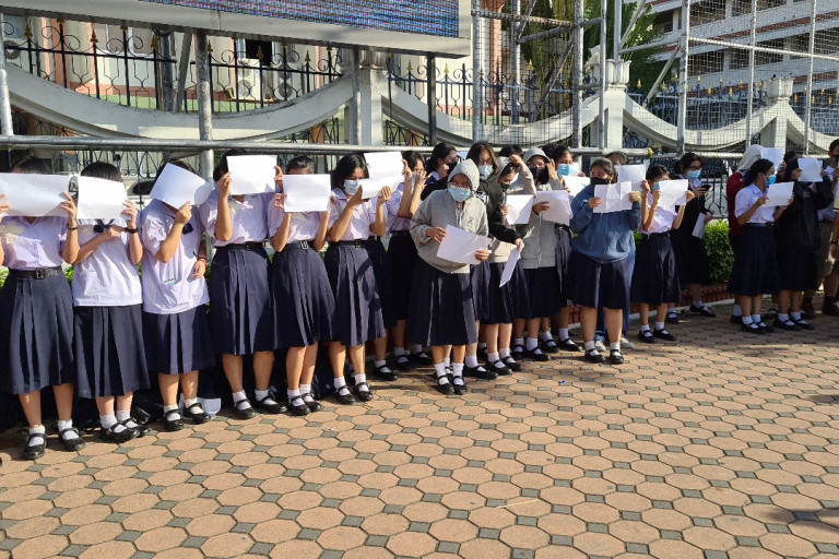 นักเรียนโรงเรียนดังหลายแห่งใน อ.หาดใหญ่ ออกมารวมตัวกันหน้าโรงเรียนยืนถือกระดาษเปล่าเป็นเวลา 15 นาทีเพื่อแสดงจุดยืนทางการเมืองก่อนสลายตัวไปอย่างสงบ ท่ามกลางเจ้าหน้าที่ฝ่ายความมั่นคงที่มาสังเกตุการณ์อย่างใกล้ชิด