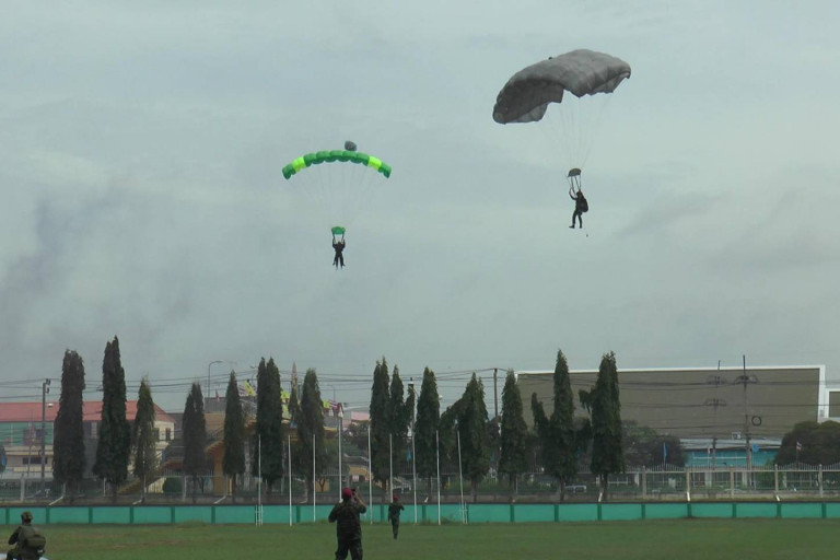 นอกจากนี้ ภายในงานยังจัดให้มีการสาธิต การแสดงความสามารถของทหารพลร่ม ครูหมวกแดง จากหน่วยรบพิเศษ ซึ่งเป็นการกระโดดร่มดิ่งพสุธาที่ระดับความสูง 8,000 ฟิต จากอากาศยาน แบบ เอ็มไอ 17 ของศูนย์การบินทหารบก เพื่อนำธงชาติไทย และอุปกรณ์กีฬา ส่งมอบให้แก่นักเรียนนักศึกษาได้รับชม อีกด้วย
