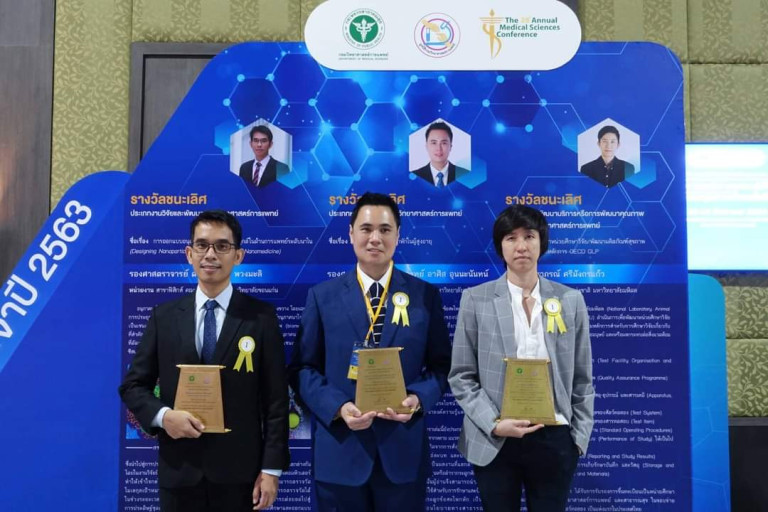 ซึ่งเป็นผลงานการพัฒนาด้านวิทยาศาสตร์การแพทย์และสาธารณสุขที่สามารถแก้ไขปัญหาสาธารณสุขของประเทศ 1.ผลงานการออกแบบอนุภาคนาโนเพื่อการประยุกต์ในด้านการแพทย์ระดับนาโน 2.ตำรากระดูกข้อสะโพกหักในผู้สูงอายุ และ 3.การพัฒนาหน่วยศึกษาวิจัยพัฒนาผลิตภัณฑ์สุขภาพในสัตว์ทดลองตามหลักการ OECD GLP 27 ส.ค.2563 นพ.โอภาส การย์กวินพงศ์ อธิบดีกรมวิทยาศาสตร์การแพทย์ เปิดเผยว่า ในงานประชุมวิชาการวิทยาศาสตร์การแพทย์ ครั้งที่ 28 กรมวิทยาศาสตร์การแพทย์ ได้คัดเลือกผลงานวิชาการเพื่อมอบรางวัล DMSc Award ซึ่งเป็นการเปิดโอกาสให้บุคลากรทางวิทยาศาสตร์การแพทย์และนักวิจัยมีเวทีส่งผลงานเข้าประกวด โดยมีผลงานชนะเลิศทั้งหมด 3 รางวัล ได้แก่ 1.ประเภทงานวิจัยและพัฒนาทางวิทยาศาสตร์การแพทย์ 2.ประเภทหนังสือและตำราทางวิทยาศาสตร์การแพทย์ และ 3.ประเภทการพัฒนาบริการหรือพัฒนาคุณภาพบริการทางวิทยาศาสตร์การแพทย์ โดยในปีนี้โดยปีนี้สมเด็จพระเจ้าน้องนางเธอเจ้าฟ้าจุฬาภรณวลัยลักษณ์ อัครราชกุมารี กรมพระศรีสวางควัฒน วรขัตติยราชนารี โปรดให้ ศาสตราจารย์เกียรติคุณ ดร.คุณหญิงมธุรส รุจิรวัฒน์ รองประธานสถาบันวิจัยจุฬาภรณ์ ฝ่ายวิจัยและวิชาการเป็นผู้แทนพระองค์ มอบรางวัลดังกล่าว 1.รางวัลประเภทงานวิจัยและพัฒนาทางวิทยาศาสตร์การแพทย์ ได้แก่ รองศาสตรจารย์ ดร.ธีระพงษ์ พวงมะลิ คณะวิทยาศาสตร์ มหาวิทยาลัยขอนแก่น จากผลงานการออกแบบอนุภาคนาโนเพื่อการประยุกต์ในด้านการแพทย์ระดับนาโน (Designing Nanoparticles for Applications in Nanamedicine) โดยงานวิจัยได้ศึกษากลไกต่างๆ ที่เกิดขึ้นระดับโมเลกุลด้วยการจำลองเชิงคอมพิวเตอร์ทำให้เข้าใจกลไกการตรวจับโมเลกุล 8-oxo-dG ได้อย่างลึกซึ้ง โดยสามารถตรวจวัดโมเลกุลเป้าหมาย ที่มีความเข้มข้นต่ำๆ ได้ (ในระดับ nM) และสามารถตรวจวัดได้ในช่วงระยะเวลาสั้นๆ (น้อยกว่า 30 นาที) รวมทั้งมีราคาถูก สามารถต่อยอดไปสู่การประดิษฐ์ชุดตรวจแบบพกพาที่มีต้นทุนการผลิตต่ำ 2.รางวัลประเภทหนังสือและตำราทางวิทยาศาสตร์การแพทย์ ได้แก่ รองศาสตราจารย์ นพ.อาศิส อุนนะนันทน์ คณะแพทยศาสตร์ศิริราชพยาบาล มหาวิทยาลัยมหิดล เรื่อง ตำรากระดูกข้อสะโพกหักในผู้สูงอายุ เป็นหนังสือเล่มแรกของประเทศไทยที่ได้รวบรวมเนื้อหาจำเพาะเกี่ยวกับเรื่องกระดูกข้อสะโพกหักในผู้สูงอายุ โดยมุ่งเน้นการดูแลอย่างเป็นองค์รวมและให้การรักษาสาเหตุของการเกิดกระดูกข้อสะโพกหัก ซึ่งสามารถใช้เป็นข้อมูลอ้างอิงสำหรับบุคลากรทางการแพทย์ทุกระดับ 3.รางวัลประเภทการพัฒนาบริการหรือพัฒนาคุณภาพบริการทางวิทยาศาสตร์การแพทย์ ได้แก่ ดร.ภัสสราภร