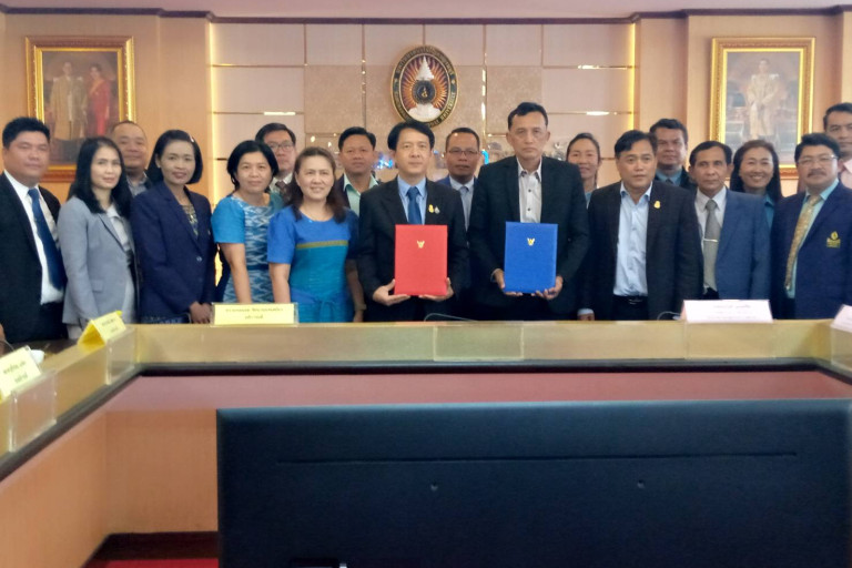 วันที่ 28 ส.ค.63 ผู้สื่อข่าวรายงานว่า ที่ห้องประชุมสภามหาวิทยาลัยราชภัฏกาญจนบุรี อาคารดินสอชั้น 2 อ.เมือง จ.กาญจนบุรี ดร.ณรงค์เดช รัตนานนท์เสถียร อธิการบดีมหาวิทยาลัยราชภัฏกาญจนบุรี และนายธนะวันธิ์ แพทย์ชีพ รองผู้อำนวยการสำนักงานเขตพื้นที่การศึกษามัธยมศึกษาเขต 8 (รักษาราชการแทน ผอ. สพม.เขต 8)ได้ทำพิธีลงนามบันทึกข้อตกลงความร่วมมือทางด้านวิชาการและการจัดการศึกษา โดยมี ผศ. จรายุทธ ประทีปวรกาญจน์ ผู้ช่วยอธิการบดีมหา วิทยาลัยราชภัฏกาญจนบุรี นายหงษ์ดี ศรีเสน ผู้อำนวยโรงเรียนวิสุทธรังษีจังหวัดกาญจนบุรี/ประธานเครือข่ายส่งเสริมประสิทธิภาพการจัดการศึกษามัธยมศึกษาจังหวัดกาญจนบุรี