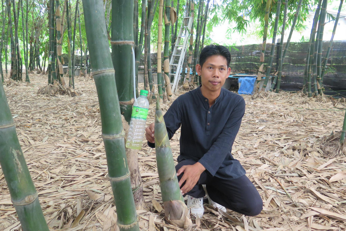 “ปลูกไผ่กิมซุงสามารถใช้ประโยชน์ได้ทั้งลำ ได้แก่ กิ่ง แขนง ยอด ลำไผ่ จำหน่ายกิ่งพันธุ์ โดยใช้วิธีตัดกิ่งแขนงมาเพาะชำ โดยใน 1 หน่อ สามารถตัดกิ่งแขนงมาชำได้ประมาณ 5-6กิ่ง จำหน่ายราคากิ่งละ 50 บาท ส่วนหน่อไผ่นำมาแปรรูปเป็นหน่อไม้ดอง ขายกิโลกรัมละ 40 บาท ลำที่ไม่ใช้นำไปเผาแบบภูมิปัญญาชาวบ้านโดยการใช้ดินแกลบ ได้เป็นถ่าน นอกจากนี้ได้เจาะรูไผ่เพื่อนำน้ำไผ่มาจำหน่ายขวดละ 10 บาท ซึ่งจากงานวิจัยของมหาวิทยาลัยนเรศวร เบื้องต้นพบว่า น้ำไผ่เป็นน้ำสะอาดไม่มีจุลินทรีย์ที่มีผลกระทบต่อร่างกายสามารถดื่มได้ นอกจากนี้กำลังปรึกษากับพลังงานจังหวัด เพื่อแปรรูปไผ่เป็นถ่านชาโคลเพื่อทำเครื่องสำอางอย่างไรก็ตามรายได้จากการขายกิ่งไผ่ หน่อไผ่ 60,000-70,000 บาทต่อปี” เกษตรกรดีเด่นฯ กล่าว