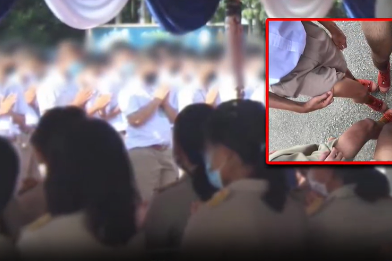 จากกรณีโลกโซเชียลแชร์ภาพนักเรียนผิวไหม้เป็นรอยจากการตากแดดในพิธีไหว้ครู ล่าสุดเพจ Drama-addict แสดงความเห็นว่า