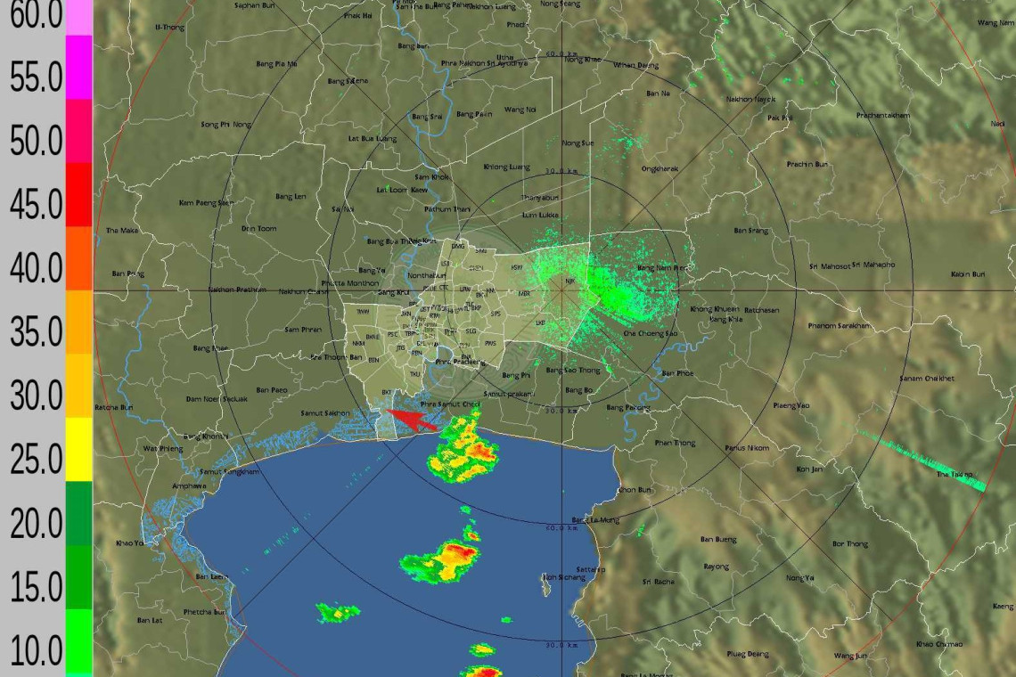 ศูนย์ป้องกันน้ำท่วมกทม. รายงานเมื่อเวลา 08.00 น. กทม.ไม่พบกลุ่มฝน / ฝนเล็กน้อย-ปานกลาง อ.เมืองสมุทรปราการ อ่าวไทย เคลื่อนทิศตะวันตกเฉียงเหนือ คาดเคลื่อนเข้าตอนล่างเขตบางขุนเทียนในเวลาต่อไป