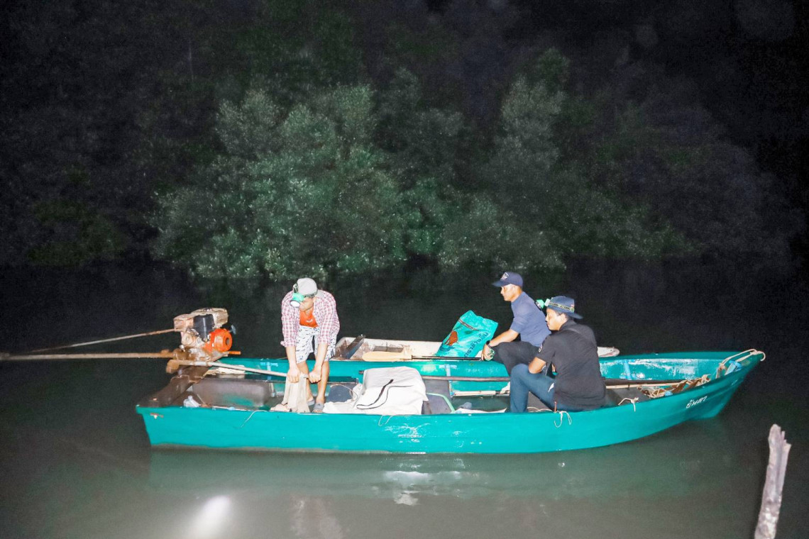 ทั้งนี้ เจ้าหน้าที่แบ่งการทำงานออกเป็น 3 ชุด ชุดแรกนำโดย นายนิคม สุขสวัสดิ์ ออกเดินทางไปล่วงหน้าโดยใช้เรือพายทำการส่องไฟสำรวจว่าจระเข้ออกหากิน หรือหลบอยู่ในบริเวณใด ก่อนที่ชุดที่ 2 และ 3 จะตามไปสนับสนุนด้วยเรือประมงพื้นบ้าน โดยเมื่อเจ้าหน้าที่ชุดแรกไปถึงจุดดังกล่าว ก็พบว่าจระเข้อยู่ในบริเวณใกล้เคียงกับจุดที่เคยพบ จึงขอกำลังสนับสนุนก่อนช่วยกันนำอวนตาข่ายเข้าล้อมรอบจุดที่คาดว่าจระเข้จะหลบอยู่ และบีบวงให้แคบลงเพื่อต้อนจระเข้ให้เข้าไปยังจุดที่ต้องการ แต่ปรากฏว่าจระเข้ได้ใช้พละกำลังจำนวนมากฉีกอวนตาข่ายจนขาดวิ่น และมุดออกไปได้ ก่อนจะดำหายไปในลำคลอง ทำให้เจ้าหน้าที่ต้องปรับเปลี่ยนวิธีการในการค้นหา โดยพบว่าจระเข้ยังวนเวียนอยู่ในบริเวณใกล้เคียง แต่ไม่สามารถจับตัวได้ จนกระทั่งเวลาประมาณ 03.00 น.ซึ่งเป็นช่วงที่น้ำลงต่ำสุด เป็นอุปสรรคต่อการดำเนินการ จึงได้ยุติภารกิจชั่วคราวก่อนเดินทางกลับ