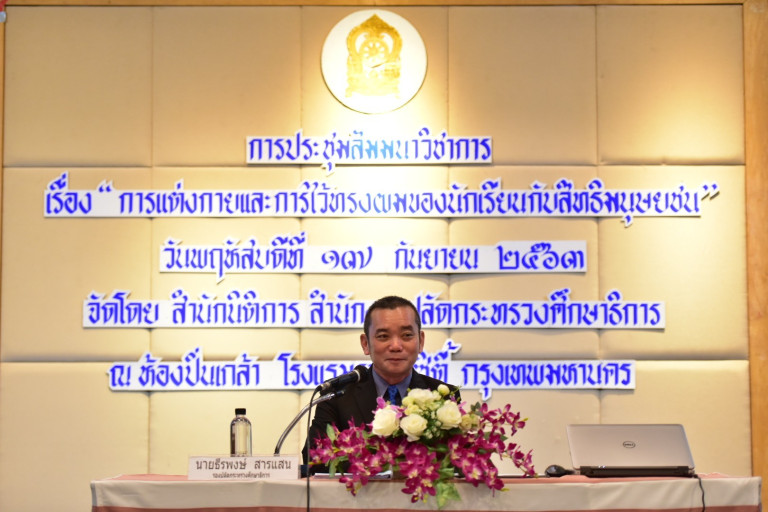 เมื่อวันที่ 17 ก.ย. 63 นายธีรพงษ์ สารแสน รองปลัดกระทรวงศึกษาธิการ เป็นประธานเปิดสัมมนาวิชาการ “การแต่งกายและการไว้ทรงผมของนักเรียนไทยกับสิทธิมนุษยชน”โดยมีการบรรยาย โดย ศาสตราจารย์กิตติคุณ วิทิต มันตาภรณ์ คณะนิติศาสตร์ จุฬาลงกรณ์มหาวิทยาลัย การอภิปรายโดย ผู้แทนสำนักงานคณะกรรมการสิทธิมนุษยชนแห่งชาติ, กรมกิจการสตรีและสถาบันครอบครัว และสำนักงานปลัดกระทรวงศึกษาธิการ มีผู้เข้าร่วมสัมมนา 80 คน ณ โรงแรมรอยัล ซิตี้