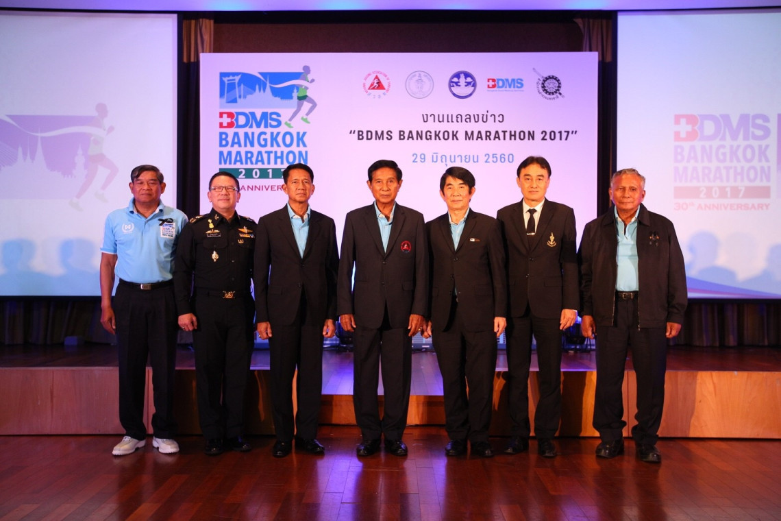 เมื่อวันที่ 29 มิ.ย. ที่โรงพยาบาลกรุงเทพ พลเอก มนัส คล้ายมณี นายกสมาคมนักวิ่งเพื่อสุขภาพแห่งประเทศไทย จัดงานแถลงข่าวร่วมกับ นายโฆษิต อักษรชาติ รองผู้อำนวยการสำนักวัฒนธรรม กีฬาและการท่องเที่ยว กรุงเทพมหานคร และนาวาอากาศเอก(พิเศษ) นพ.ไพศาล จันทรพิทักษ์ ผู้อำนวยการอาวุโส โรงพยาบาลกรุงเทพ สายกิจกรรมพิเศษ ตัวแทนในนามของ บริษัท กรุงเทพดุสิตเวชการ จำกัด (มหาชน) หรือ Bangkok Dusit Medical Services (BDMS) ขึ้นแถลงข่าวการแข่งขันรายการวิ่งมาราธอนยิ่งใหญ่ที่สุดแห่งปี “บีดีเอ็มเอสกรุงเทพมาราธอน ครั้งที่ 30” หรือ “BDMS Bangkok Marathon 2017” ชิงถ้วยพระราชทานพระบาทสมเด็จพระปรมินทรมหาภูมิพลอดุลยเดช โดยกิจกรรมครั้งนี้จัดขึ้นภายใต้แนวคิด Running is Medicine กีฬาคือยาวิเศษ ชัยชนะของสุขภาพและทุกเป้าหมายชีวิต และถือเป็นกิจกรรมวิ่งมาราธอนที่ได้รับความสนใจจากนักวิ่งทั่วโลกกว่า 40,000 คนเข้ามาร่วมการแข่งขัน โดยมี บมจ.กรุงเทพดุสิตเวชการ ในฐานะผู้สนับสนุนหลักของมหกรรมวิ่งมาราธอน “บีดีเอ็มเอสกรุงเทพมาราธอน ครั้งที่ 30” ที่ชูจุดแข็งด้านเวชศาสตร์การกีฬา เพิ่มสมรรถภาพกล้ามเนื้อและการป้องกันการบาดเจ็บในระหว่างแข่งขัน พร้อมดูแลนักวิ่งจากทั่วโลกอีกด้วย