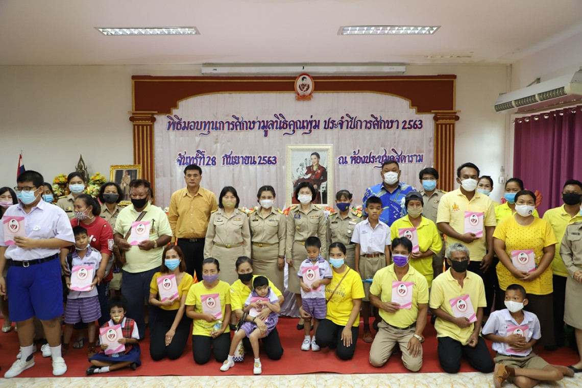 วันที่ 28 ก.ย.63 ที่ศูนย์การศึกษาพิเศษประจำจังหวัดพระนครศรีอยุธยา นายภานุ แย้มศรี ผู้ว่าราชการจังหวัดพระนครศรีอยุธยา มอบหมายให้ นางสาวนุชนาถ ประทีปธีรานันต์ รองผู้ว่าราชการจังหวัดพระนครศรีอยุธยา เป็นประธานในพิธีมอบทุนสนับสนุนการศึกษามูลนิธิคุณพุ่ม ปีการศึกษา 2563 และกล่าวคำให้โอวาทของ ทูลกระหม่อมหญิง อุบลรัตน์ราชกัลญาสิริวัฒนาพรรณวดี เพื่อเป็นขวัญกำลังใจแก่เด็กพิการและครอบครัว โดยมี นางอำไพพิศ บุนนาค ผู้อำนวยการศูนย์การศึกษาพิเศษประจำจังหวัดพระนครศรีอยุธยา พร้อมด้วย พ.อ.อ.นรชัย กฤษณะเกษกุล เลขานุการสภาองค์การบริหารส่วนจังหวัดฯ ประธานกรรมการสถานศึกษาศูนย์การศึกษาพิเศษฯ กำนัน ผู้ใหญ่บ้าน กรรมการสถานศึกษา สมาคมผู้ปกครองคนพิการ และเจ้าหน้าที่ เข้าร่วมในพิธี ณ ห้องประชุมดุสิดาราม ศูนย์การศึกษาพิเศษประจำจังหวัดพระนครศรีอยุธยา
