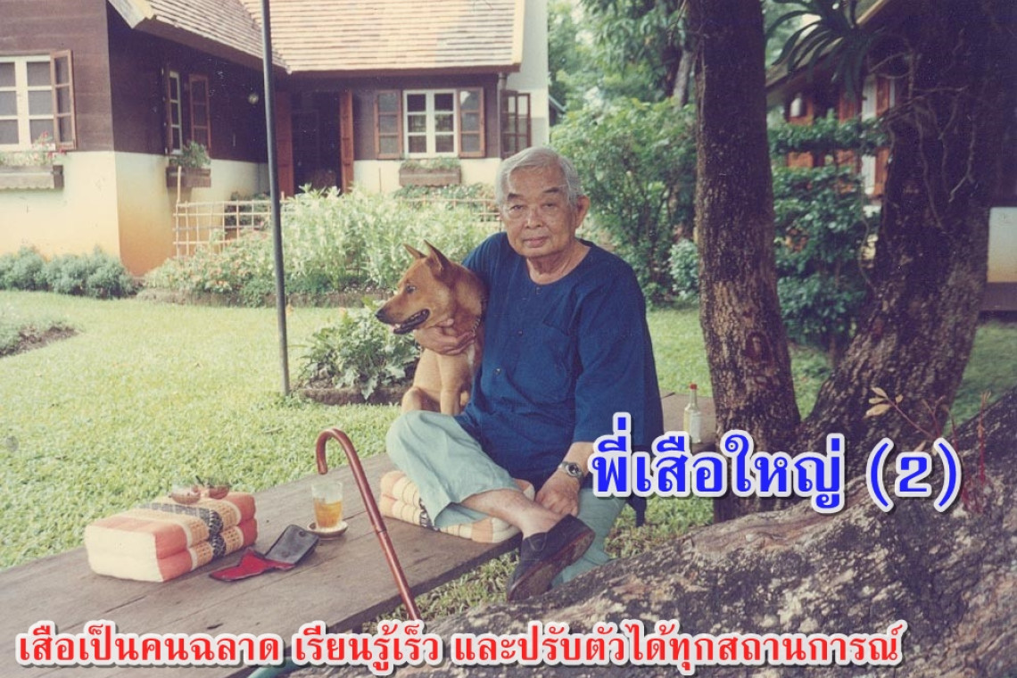ลีลาชีวิต / ทวี สุรฤทธิกุล เสือเป็นคนฉลาด เรียนรู้เร็ว และปรับตัวได้ทุกสถานการณ์ ที่บ้านสวนพลูมีเด็กรับใช้อายุรุ่นราวคราวเดียวกันกับเสืออีก 2 คน คนหนึ่งไปช่วยน้าละมัยคนทำสวนดูแลรดน้ำและตัดแต่งต้นไม้ดอกไม้ อีกคนหนึ่งไปเป็นลูกมือพี่สละช่วยงานที่ใต้ถุนเรือนใหญ่ ส่วนเสือเริ่มชีวิตที่บ้านสวนพลูด้วยการเป็นผู้ช่วยแม่ครัว และด้วยความเป็นคนเอาใจใส่ ทำให้เป็นที่เอ็นดูของป้าจำรัส ทั้งยังได้ช่วยงานน้าเชื่อมให้คอยทำความสะอาดรถในทุกๆ วัน บางครั้งก็พาออกไปลองรถ จึงทำให้เสือสามารถขับรถได้ในเวลาต่อมา และพออายุได้ 18 ปี น้าเชื่อมก็พาไปทำใบขับขี่ เพื่อเป็น “มือขับสำรอง” ช่วยน้าเชื่อมขับรถไปจ่ายตลาดและซื้อข้าวของต่างๆ ตามที่ป้าจำรัสต้องการนั้นด้วย การใช้คำนำหน้าของคนในบ้านสวนพลู เป็นไปตามที่ “คุณชาย” (คือชื่อที่คนในบ้านสวนพลูเรียก ม.ร.ว.คึกฤทธิ์ ปราโมช เจ้าของบ้าน)จะกำหนด โดยไม่ได้ลำดับเรียงวงศาคณาญาติตามแบบที่สังคมไทยเขานับกันแต่อย่างใด แต่ส่วนใหญ่จะเรียกตามที่คนในบ้านเขาเรียกกันเอง เช่น เด็กๆ จะเรียกพวกผู้ชายที่อาวุโสในบ้านว่า เช่น น้าเชื่อม น้าสละ น้าละมัย และเรียกภรรยาน้าเชื่อมว่าป้าจำรัส เป็นต้น ส่วนเด็กๆ ในบ้าน ท่านอาจารย์คึกฤทธิ์จะเรียกว่า “พี่” ทุกคน ทั้งๆ ที่เด็กๆ เหล่านี้มีอายุยังไม่ถึง 20 ปี ซึ่งคำว่า “พี่” นี้ ท่านอาจารย์คึกฤทธิ์จะใช้เรียกผู้ที่มีความใกล้ชิดสนิทสนมโดยทั่วไป นัยว่าทำให้ดูเป็นกันเอง และดู “น่ารัก” ในบ้านของท่านอาจารย์คึกฤทธิ์มีสัตว์เลี้ยงอยู่หลายอย่าง โดยเฉพาะสุนัขที่เจ้าของบ้าน “โปรด” เป็นพิเศษ ทั้งพันธุ์ไทย พันธุ์ฝรั่ง และพันธุ์ทาง โดยมีครอบครัวสุนัขไทยอยู่ครอบครัวหนึ่งที่ท่านอาจารย์คึกฤทธิ์เอามาเลี้ยงตั้งแต่ที่ตัวแม่ยังอยู่ที่ระยอง คือท่านอาจารย์คึกฤทธิ์ไปได้ตัวแม่มาจากชายหาดแหลมแม่พิมพ์ ในคราวที่ไปพักผ่อน ณ “กระท่อมริมหาด” ในครั้งหนึ่ง (ท่านอาจารย์คึกฤทธิ์มีตำแหน่งเป็นรองประธานกรรมการธนาคารกรุงเทพฯพาณิชยการอยู่ด้วย ได้ไปตรวจงานธนาคารทางชายฝั่งทะเลตะวันออก แล้วให้ผู้จัดการธนาคารที่ระยองพาไปเที่ยวหาดแม่พิมพ์ โดยบอกว่าจะไปไหว้ “สุนทรภู่” ซึ่งท่านอาจารย์คึกฤทธิ์ได้อ่านมาว่า สุนทรภู่ได้รับแรงบันดาลใจในการเขียนเรื่อง “พระอภัยมณี” จากที่หาดแม่พิมพ์นี้ โดยท่านอาจารย์คึกฤทธิ์ได้มาพักที่กระท่อมของชาวประมงริมหาดแม่พิมพ์ และด้วยการโอภาปราศรัยที่ชอบพอกัน คุณลุงชาวประมงเจ้าของบ้านจึงเสนอยกที่ดินส่วนหนึ่งให้ท่านอาจารย์คึกฤทธิ์ แต่ท่าน