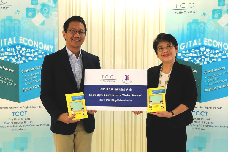 บริษัท ที.ซี.ซี. เทคโนโลยี จำกัด (ทีซีซีเทค) นำโดย นายวรดิษฐ์ วิญญรัตน์ กรรมการบริหารและรักษาการกรรมการผู้จัดการ มอบเงินสนับสนุน โครงการ "สมุดบันทึกแปลนชีวิต" (Student Planner Project) ประจำปี 2560 เพื่อการพัฒนาเยาวชนไทย โดยมี นางสาวนันทนา ฉันทวิลาสวงศ์ ที่ปรึกษามูลนิธิพัฒนาทักษะชีวิต (ขวา) เป็นผู้รับมอบ