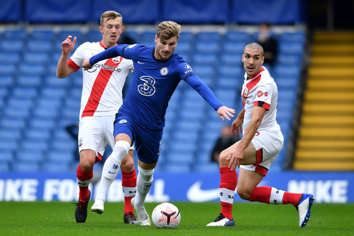 ที่สนาม สแตมฟอร์ด บริดจ์ ประเทศอังกฤษ ในการแข่งขันฟุตบอลพรีเมียร์ลีก ฤดูกาล 2020-2021 คืนวันที่ 17 ต.ค.63 ระหว่างทีม "เชลซี" พบกับทีม "เซาธ์แฮมป์ตัน" เริ่มเกมการแข่งขันในครึ่งเวลาแรก ในนาทีที่ 15 เชลซี ขึ้นนำ 1-0 จากจังหวะที่ แวร์เนอร์ พลิกหลบ เบดนาเร็ค เข้าไปในกรอบเขตโทษก่อนลากเข้ากลางหาช่องแล้วยิงแฉลบบล็อคก่อนเข้าประตูไปเป็นลูกแรกของเขาในเกมลีก ต่อมาในนาทีที่ 25 เชลซียังเปิดเกมรุกต่อเนื่องเม้าท์ลากบอลเข้าไปในกรอบเขตโทษก่อน พูลิซิชตามมาเล่นแล้วเปิดก่อนออกหลังวอล์คเกอร์-ปีเตอร์สบล็อคได้บอลมาเข้าทางเม้าท์ยิงก็ไปติดบล็อนคนเดิม และในนาทีที่ 29 เชลซี มาหนีห่างเป็น 2-0 เริ่มจาก จอร์จินโญ่ ทิ้งบอลยาวจากแดนตัวเองบอลกระดอนแล้ว แวร์เนอร์ ไปแย่งมาจากเบดนาเร็คได้ก่อนกระดกหนีแม็คคาร์ธี่ย์แล้วตามไปโขกเข้าประตูไป และในนาทีที่ 43 เซาธ์แฮมป์ตัน มายิงตีไข่แตก 1-2 จากจังหวะที่ ฮาแวร์ตซ์ ไปเสียบอลกลางสนามทำให้ทีมเสียหาย อดัมส์แทงให้อิงส์แตะหลบเกปาก่อนยิงประตูโล่งๆเข้าไปสบายๆ