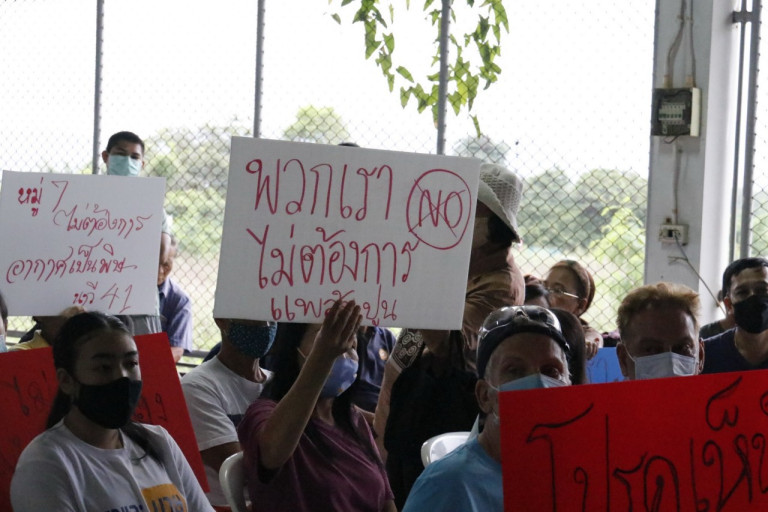 ซึ่งประชาชนส่วนใหญ่ทราบแล้วว่าจะมีโครงการก่อสร้างแพนท์ปูนสำเร็จ ดังกล่าว ต่างนำป้ายมาประท้วงโครงการก่อสร้างด้วยข้อความต่างๆ อาทิ หนูไม่ต้องการอากาศเป็นพิษ,ลูกหลานเราไม่เอา โรคปอดและผิวหนัง,พวกเราไม่ต้องการแพนท์ปูน, โปรดเห็นใจชาวบ้านหมู่ 7 ด้วย และมีข้อ ความโจมตี ไม่เห็นด้วยกับการก่อสร้างอีกมากมาย ในขณะผู้แทนของบริษัท พยายามเข้าชี้แจง แต่ผู้เข้าร่วมประชุมไม่ยอมรับฟังต่างตะโกนโห่ร้องด้วยความไม่พอใจ จนต้องยุติการประชุมชี้แจงในวันนี้ พร้อมกับจะร่วมลงชื่อคัดค้านการก่อสร้างจนถึงที่สุด และก่อนแยกย้ายกันกลับยังได้เผารายชื่อผู้ลงนามร่วมประชุมในครั้งนี้ ด้วยความไม่พอใจของชาวบ้านกว่า 100 คน ที่เข้าร่วมประชุม เพื่อรับฟังโครงการก่อสร้างแพนท์ปูนสำเร็จ ดังกล่าว
