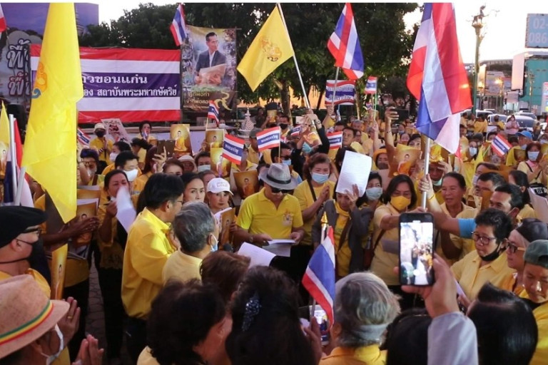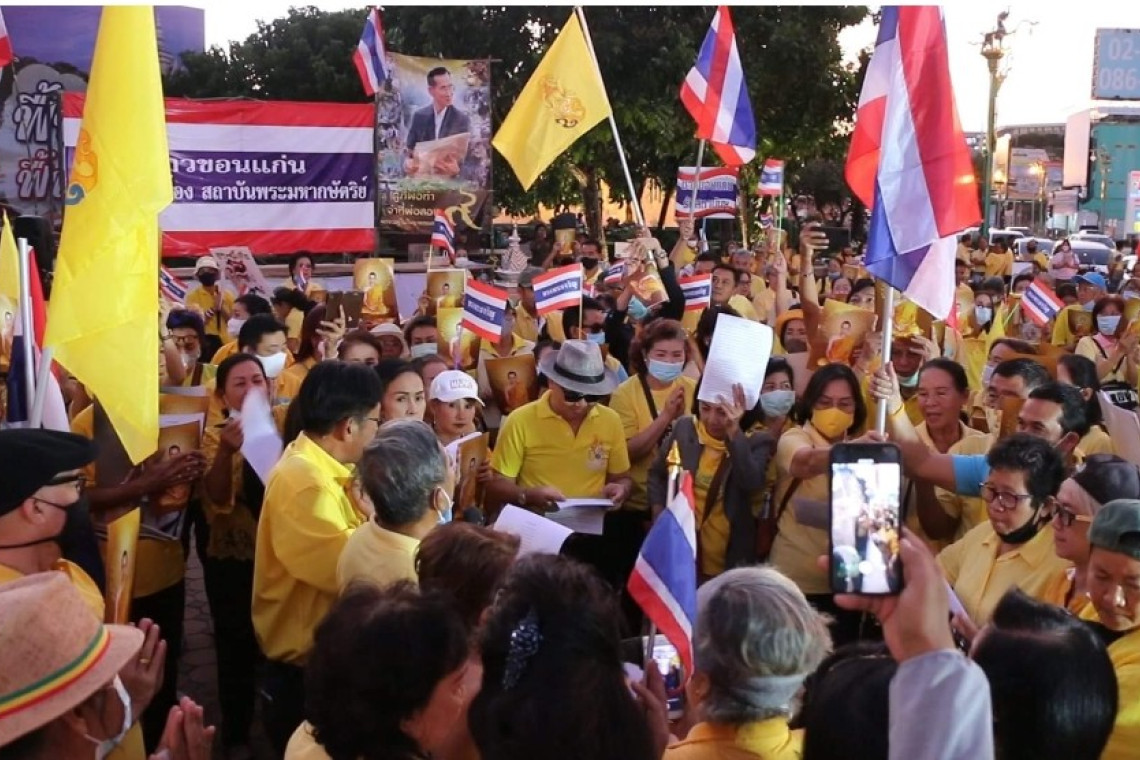 เมื่อเวลา 17.30 น.วันที่ 23 ตุลาคม 2563 ผู้สื่อข่าวรายงานว่า ที่บริเวณอนุสาวรีย์ประชาธิปไตย ภายในศาลเจ้าพ่อหลักเมือง ถ.ศรีจันทร์ ในเขตเทศบาลนครขอนแก่น ได้มีกลุ่มชาวขอนแก่นปกป้องสถาบัน และกลุ่มไทยภักดีขอนแก่น กว่า 100 คน ร่วมกันใส่เสื้อสีเหลือง โบกธงชาติ ธงสัญลักษณ์และพระบรมฉายาลักษณ์ร.9 ตั้งเวทีปราศรัยโดยมีนายกมล กิจกสิวัฒน์ ,นายวุฒิพงศ์ ศุภรมย์ และ น.ส.วรพรรณ เบญจวรกุล แกนนำได้ตั้งเวทีปราศรัย วิจารณ์การรวมตัวชุมนุมของเหล่านักเรียนนักศึกษาตลอดระยะเวลาที่ผ่านมา