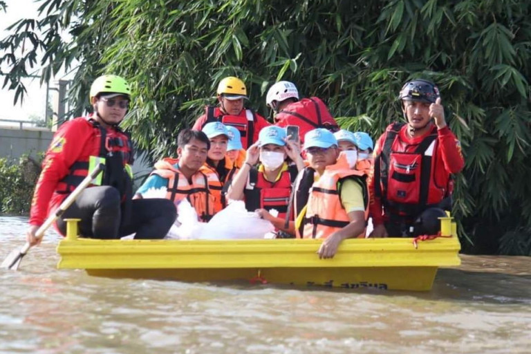 โดย คุณนิภาพรรณ สุขวิมล ประธานชมรมแม่บ้านตำรวจสอบสวนกลาง (บช.ก.) พร้อมคณะ ร่วมกับ ตำรวจทางหลวง กู้ภัยเพชรเกษม จิตอาสาชมรมฮักเขาใหญ่ ปรุงอาหารสดใหม่ใส่กล่องนำไปแจกจ่ายให้ชาวบ้านเดือดร้อนน้ำท่วมในพื้นที่บ้านไร่ ต.ท่าอ่าง อ.โชคชัย จ.นครราชสีมา
