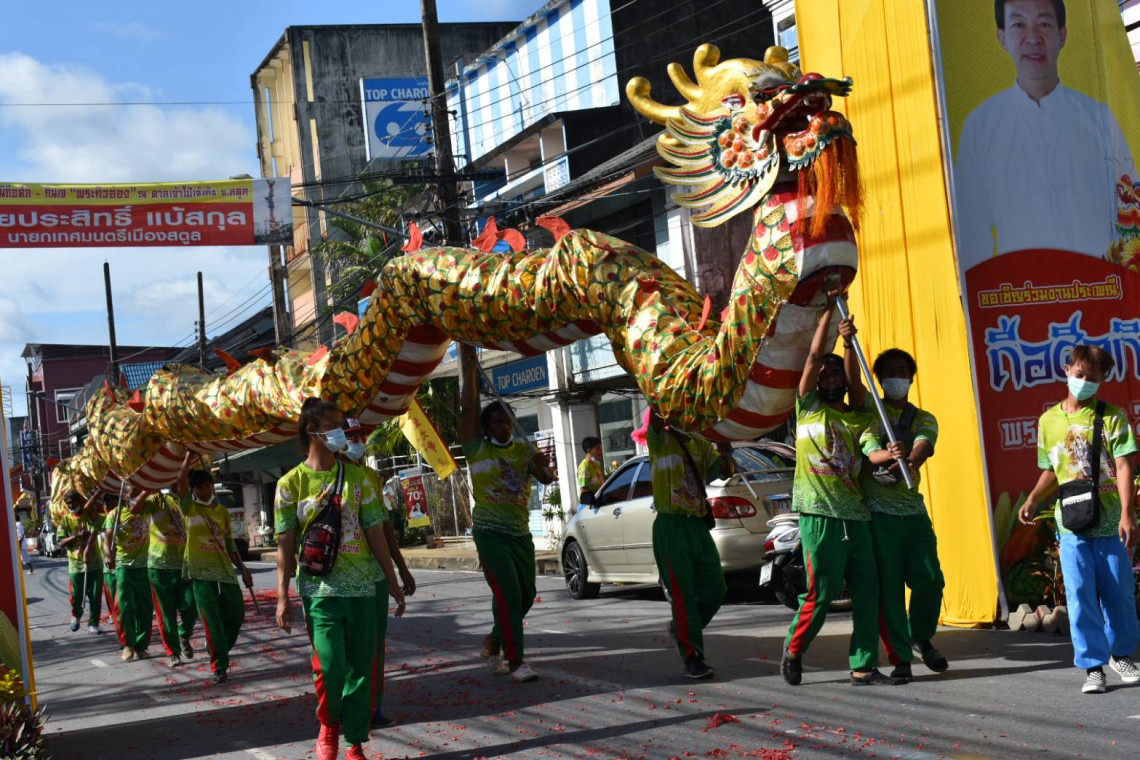 สตูลไทยเชื้อสายจีนแห่เกี้ยว “พระกิวอ๋อง” พร้อมขบวนร่างทรง สิงโต และมังกรทองออกโปรดลูกหลาน ในงานสืบสานประเพณีถือศีลกินเจ ประจำปี 2563 ณ ศาลเจ้าโป้เจ้เก้ง สีสันความงดงามของสังคมพหุวัฒนธรรม (พุทธ-มุสลิม-จีน) ปลายด้ามขวานอยู่ร่วมกันอย่างสงบสุข