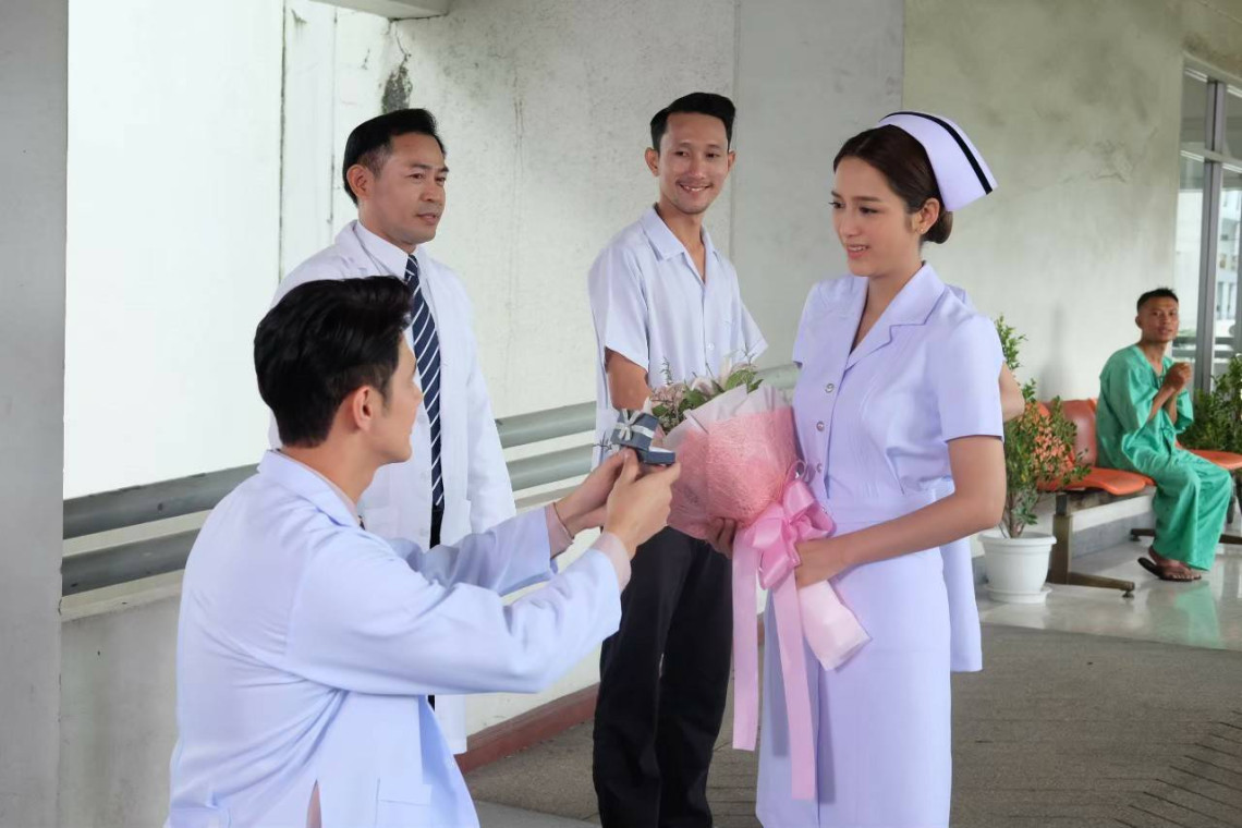 แน่นอนว่าเรามีฉากเบื้องหลังมาให้ดูแบบออเดิร์ฟกันก่อน โดยเรื่องราวของ ยุคลเดช (โอ๊ต รัฐธีร์) มาเห็น ปานตะวัน (แม็กกี้ อาภา) พยาบาลสาวที่ตนหลงรักมาตั้งแต่เด็กถูก หมออโณทัย (ดนย์ กณิณ) คุกเข่าขอแต่งงาน โดยมีเพื่อนพยาบาล จี๊ด (โอ๋-อรวรา) ออย (แอนนี่ ดวงกมล) เพื่อนๆ หมอ และคนไข้ช่วยกันทำเซอร์ไพร้สสุดฟิน!!!