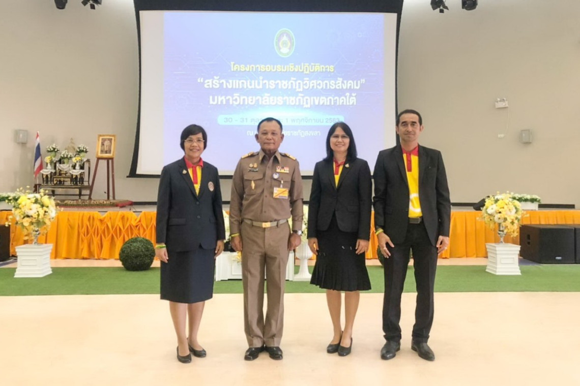 เมื่อเร็วๆ นี้ พลเอก ดาวพงษ์ รัตนสุวรรณ องคมนตรี ให้เกียรติเป็นประธานเปิดโครงการอบรมเชิงปฏิบัติการ “สร้างแกนนำราชภัฏวิศวกรสังคม” มหาวิทยาลัยราชภัฏเขตภาคใต้ ณ อาคารศูนย์บริการนักศึกษา มหาวิทยาลัยราชภัฏสงขลา (มรภ.สงขลา) โดยมี ผศ.ดร.ทัศนา ศิริโชติ รักษาราชการแทนอธิการบดี มรภ.สงขลา พร้อมด้วยคณะผู้บริหาร แขกผู้มีเกียรติ บุคลากรทางการศึกษา นักศึกษาราชภัฏเขตภาคใต้ และเจ้าหน้าที่ที่เกี่ยวข้อง เข้าร่วมงาน นอกจากนั้น ทางมหาวิทยาลัยยังได้นำนักศึกษาผู้เข้าอบรม ลงพื้นที่ฝึกปฏิบัติเก็บข้อมูลด้วยเครื่องมือต่างๆ ในชุมชนเกาะแต้ว และ ชุมชนเขารูปช้าง จ.สงขลา