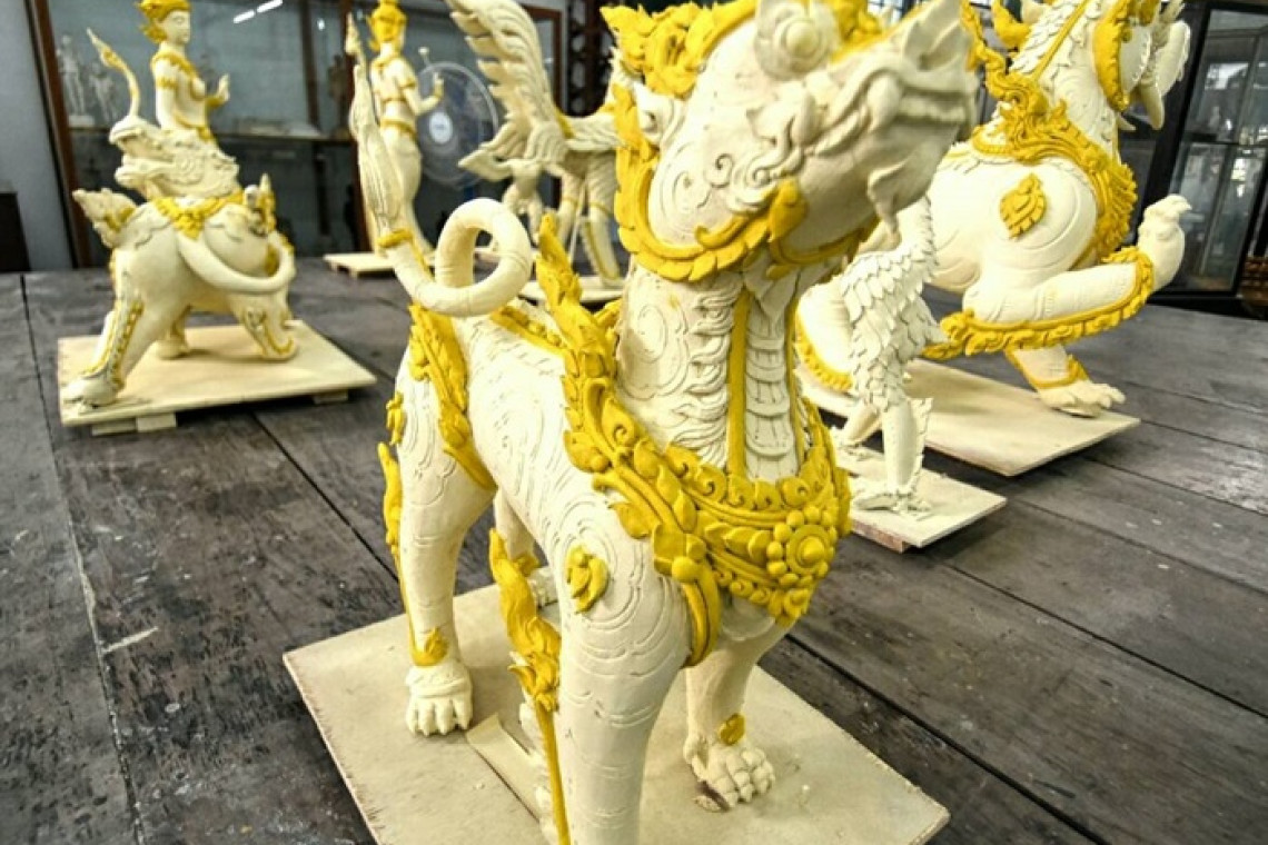 นำภาพความน่ารักของงานปั้นสัตว์หิมพานต์ประดับสระอโนดาต พระเมรุมาศ งานพระราชพิธีถวายพระเพลิงพระบาทสมเด็จพระปรมินทรมหาภูมิพลอดุลยเดช (ในหลวงรัชกาลที่ 9) มาให้ชม ที่ตอนนี้จิตรกรกำลังลงสีทองบนลายเครื่องประดับสัตว์หิมพานต์อยู่จำนวนหนึ่ง