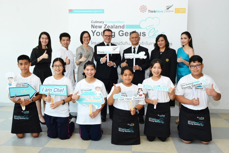 “อาชีพเชฟ” ถือเป็นหนึ่งอาชีพในฝันของน้องๆ ยุคใหม่ เพื่อสานฝันเยาวชนไทยที่มีใจรักการทำอาหาร หน่วยงานการศึกษานิวซีแลนด์ ร่วมกับ โรงเรียนสาธิต มหาวิทยาลัยศรีนครินทร์วิโรฒ ประสานมิตร (ฝ่ายมัธยม) จัดโครงการ “New Zealand Young Genius Chef Culinary Competition ค้นหาเชฟวัยทีน...ที่มีใจรักในการทำอาหาร” เพื่อค้นหาสุดยอดเชฟรุ่นเยาว์ที่มีอายุตั้งแต่ 13 ปีขึ้นไป ชิงรางวัลการศึกษาดูงานหลักสูตรการประกอบอาหารที่สถาบันการศึกษาในประเทศนิวซีแลนด์ ซึ่งมีน้องๆ สมัครเข้าแข่งขันทั้งหมด 50 คน จาก 27 โรงเรียน โดยเมื่อเร็วๆ นี้ทางโครงการฯ ได้จัดปฐมนิเทศเพื่อเตรียมความพร้อมให้กับผู้เข้าแข่งขัน โดยได้รับเกียรติจาก มร.เบน คิง เอกอัครราชทูตนิวซีแลนด์ประจำประเทศไทย เป็นประธาน นอกจากนี้ เชฟท็อป - กิตติ ดรุกาญจน์พฤติ สุดยอดเชฟนักล่ารางวัล ศิษย์เก่าจากนิวซีแลนด์มาสาธิต ยังได้มาร่วมโชว์ทักษะด้านการประกอบอาหาร พร้อมให้ความรู้และเทคนิคในการทำอาหารให้แก่น้องๆ ผู้เข้าแข่งขัน รวมทั้งปิดโอกาสให้ซักถามกันอย่างใกล้ชิด ณ ห้องประชุม โรงเรียนสาธิตมหาวิทยาลัยศรีนครินทร์วิโรฒ ประสานมิตร (ฝ่ายมัธยม) มร.เบน คิง เอกอัครราชทูตนิวซีแลนด์ประจำประเทศไทย เปิดเผยว่า ประเทศนิวซีแลนด์มีสถาบันการศึกษาด้านการประกอบอาหารชั้นหลายแห่งที่เปิดรับนักเรียนและนักศึกษาจากทั่วโลก ได้มาเรียนรู้และศึกษา สำหรับโครงการแข่งขันประกอบอาหาร “นิวซีแลนด์ ยัง จีเนียส เชฟ” ในครั้งนี้ หน่วยงานการศึกษานิวซีแลนด์ มีความยินดีที่ โรงเรียนสาธิต มหาวิทยาลัยศรีนครินทร์วิโรฒ ประสานมิตร (ฝ่ายมัธยม) ให้ความร่วมมือในการเป็นเวทีจัดประกวดการแข่งขัน เพื่อยกระดับทางการศึกษาให้กับนักเรียน และเปิดโอกาสให้ สร้างความสัมพันธ์อันแน่นแฟ้นระหว่างครูกับนักเรียน ของโรงเรียนในเครือข่ายต่างๆ ที่มีหลักสูตรการประกอบอาหารภายในประเทศไทยได้แลกเปลี่ยนเรียนรู้ประสบการณ์ซึ่งกันและกันด้วย ด้าน ผศ.ชวลิต สูงใหญ่ ผู้อำนวยการโรงเรียนสาธิตมหาวิทยาลัยศรีนครินทร์วิโรฒ ประสานมิตร (ฝ่ายมัธยม) กล่าวว่า นับเป็นโอกาสอันดีที่จะได้เปิดโอกาสให้กับนักเรียนได้เรียนรู้ ทางด้านความสามารถเฉพาะตนของเด็กๆ และแลกเปลี่ยนประสบการณ์ซึ่งกันและกัน ในฐานะที่โรงเรียนเป็นห้องทดลองค้นคว้าวิจัยทางการศึกษา ก็ยินดีที่ได้เป็นส่วนหนึ่งที่ได้ส่งเสริมและผลักดันให้นักเรียนได้แสดงออกซึ่งความสามารถอย่างเต็มที่ เพื่อพัฒนาฝีมือให้ก้าวไปสู่อาชีพที่รักในอนาคต บรรยากาศ "เชฟท็อป" ปรุงอาหาร  - ลูกจรรย์ ลูกจรรย์ - น.ส.บุญยวีร์ ภาคย์วิศาล อายุ 16 ป