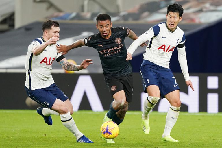ที่สนาม ท็อตแน่ม ฮ็อทสเปอร์ สเตเดี้ยม ประเทศอังกฤษ ในการแข่งขันฟุตบอลพรีเมียร์ลีก ฤดูกาล 2020-2021 คืนวันที่ 21 พ.ย.63 ระหว่างทีม "ท็อตแน่ม ฮ็อทสเปอร์" พบกับทีม "แมนเชสเตอร์ ซิตี้" เริ่มเกมการแข่งขันในครึ่งเวลาแรกได้เพียงแค่ 5 นาที สเปอร์ส ก็มาได้ประตูออกนำเร็ว 1-0 จากจังหวะที่ เอ็นดอมเบเล่ วางบอลยาวมาให้ทาง ซน ฮึง-มิน ที่วิ่งสอดขึ้นมา จับบอลด้วยขวาอย่างสวยงามก่อนจะหลุดเข้าไปยิงด้วยซ้ายบอลรอดขา เอแดร์ซอน เข้าไปประตูไป ต่อมาในนาทีที่ 13 ไก่เดือยทอง เกือบมาได้ลูกที่สองจากจังหวะที่ ซน ฮึง-มิน ขยับตัวไปอยู่ทางขวาก่อนจะ ตบบอลกลับเข้ามาให้ทาง แฮรี่ เคน ได้ยิงจ่อๆ แต่ว่าเจ้าตัวอยู่ในตำแหน่งล้ำหน้าทำให้อดได้ประตูไป อีก 2 นาที ต่อมา ทีมเยือนมีโอกาสได้ยิงบ้าง จากจังหวะที่ เดอ บรอยน์ ครอสบอลเข้ามาให้ทาง โรดรี้ ได้โหม่งเต็มๆแต่ว่า อูโก้ โยริส ยังเซฟเอาไว้ได้ ก่อนหมดเวลาครึ่งแรก 4 นาที แมนฯซิตี้ เกือบได้ประตูตีเสมอ จากจังหวะที่ มาห์เรซ เลี้ยงบอลทะลุเข้าไปในกรอบเขตโทษ แต่ว่าบอลไปตะกุตะกักอยู่หน้าเขตโทษของ สเปอร์ส ก่อนบอลจะมาเข้าทาง เชซุส ได้ซัดด้วยขวาแบบไม่ต้องจับ แต่ว่าบอลยังหลุดกรอบออกไป