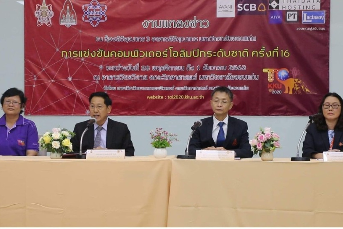 เมื่อเวลา 15.00 น.วันที่ 24 พ.ย.2563 ที่สำนักงานอธิการบดีมหาวิทยาลัยขอนแก่น หรือ มข. รศ.เกรียงศักดิ์ ภักดี รองอธิการบดีมหาวิทยาลัยขอนแก่น พร้อมด้วย ผศ.ดร.สมเกียรติ ศรีจารนัย คณบดีคณะวิทยาศาสตร์ มข.ร่วมกันแถลงข่าวการจัดการแข่งขันคอมพิวเตอร์โอลิมปิก ระดับชาติ ครั้งที่ 16 ซึ่งมูลนิธิส่งเสริมโอลิมปิกและพัฒนามาตรฐานวิทยาศาสตร์ศึกษา ในพระอุปถัมภ์ สมเด็จพระเจ้าพี่นางเธอ เจ้าฟ้ากัลยาณิวัฒนา กรมหลวงนราธิวาสราชนครินทร์ หรือ สอวน. ร่วมกับ มข. เป็นเจ้าภาพจัดการแข่งขัน ระหว่างวันที่ 28 พ.ย. – 1 ธ.ค. 2563 ที่ อาคารวิทยวิภาส คณะวิทยาศาสตร์ มข. ท่ามกลางความสนใจจากสื่อมวลชน คณาจารย์ และนักศึกษาเข้าร่วมรับฟังจำนวนมาก
