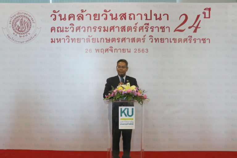 วันที่ 26 พฤศจิกายน 2563 ที่ อาคาร 23 ปฏิบัติการวิจัยทางวิศวกรรม คณะวิศวกรรมศาสตร์ศรีราชา มหาวิทยาลัยเกษตรศาสตร์ วิทยาเขตศรีราชา จ.ชลบุรี ผู้ช่วยศาสตราจารย์ น.สพ.ตร.เสรี กุญแจนาค รองอธิการบดีวิทยาเขตศรีราชา เป็นประธานในงานวันคล้ายวัน สถาปนาคณะวิศวกรรมศาสตร์ศรีราชา ครบรอบปีที่ 24 โดยมีรองศาสตราจารย์ ดร.สถาพร เชื้อเพ็ง คณบดีคณะวิศวกรรมศาสตร์ศรีราชา ให้การต้อนรับ