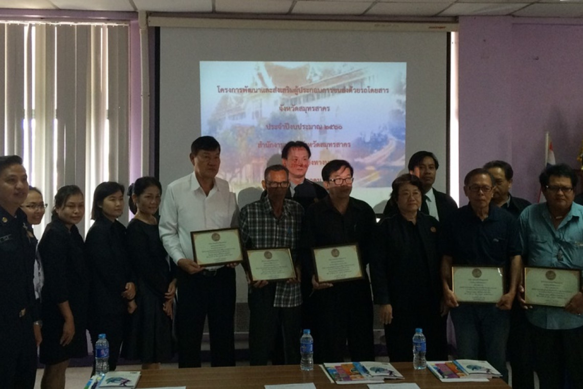 นางอุไร ทับเทศ สหกรณ์จังหวัดสมุทรสาคร มอบหมายให้นางพัชรีย์ นาคเอี่ยม ผู้อำนวยการกลุ่มส่งเสริมสหกรณ์ 1 สำนักงานสหกรณ์จังหวัดสมุทรสาคร เป็นวิทยากรบรรยายให้ความรู้ด้านการสหกรณ์ แก่ผู้ประกอบการขนส่งด้วยรถโดยสารจังหวัดสมุทรสาคร ตามโครงการพัฒนาและส่งเสริมผู้ประกอบการขนส่งด้วยรถโดยสาร โดยมีผู้แทนบริษัท ห้างหุ้นส่วนจำกัด และผู้แทนสหกรณ์เดินรถในจังหวัดสมุทรสาคร เข้าร่วมอบรม พร้อมกันนี้ ยังได้มอบเกียรติบัตรให้แก่บริษัท ห้างหุ้นส่วน สหกรณ์เดินรถกระทุ่มแบน จำกัด และสหกรณ์รถยนต์โดยสารสมุทรสาคร จำกัด ที่เข้าร่วมกิจกรรม และให้ความร่วมมือกับภาคราชการในการรณรงค์ด้านความปลอดภัยในการใช้รถใช้ถนน ณ สำนักงานขนส่งจังหวัดสมุทรสาคร