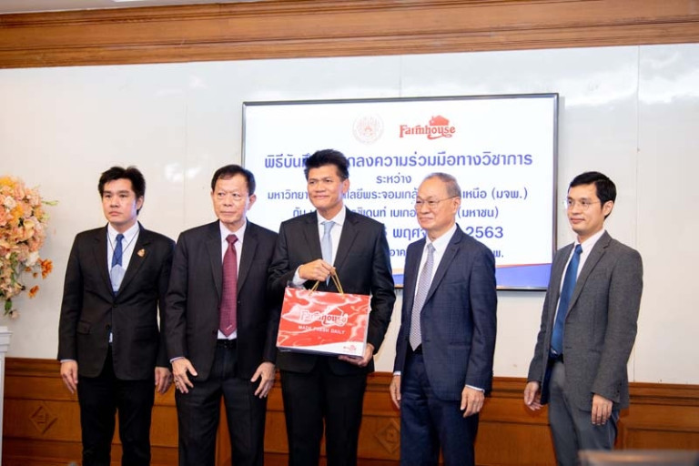 ศ. ดร.สุชาติ เซี่ยงฉิน อธิการบดีมหาวิทยาลัยเทคโนโลยีพระจอมเกล้าพระนครเหนือ (มจพ.) ลงนามบันทึกความร่วมมือทางวิชาการกับนายอภิชาติ ธรรมมโนมัย กรรมการผู้อำนวยการ บริษัท เพรซิเดนท์ เบเกอรี่ จำกัด (มหาชน โดยได้รับเกียรติจาก ดร.สาธิต ปิตุเตชะ รมช.สาธารณสุข และศา. ดร.ธีรวุฒิ บุณยโสภณ นายกสภามหาวิทยาลัยเทคโนโลยีพระจอมเกล้าพระนครเหนือ เป็นสักขีพยาน พร้อมผู้บริหารของทั้ง 2 หน่วยงาน เข้าร่วม ก ณ ห้องประชุมราชพฤกษ์ อาคารนวมินทรราชินี มจพ.