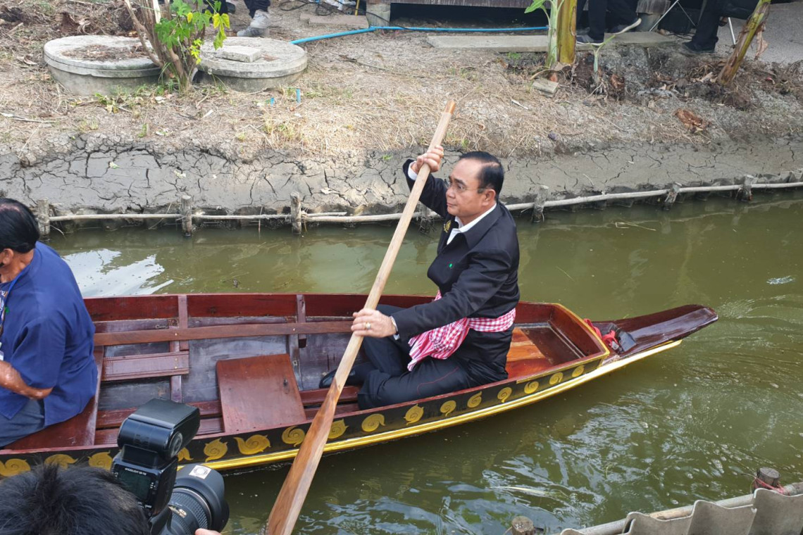 จากนั้นนายกฯ ได้เยี่ยมชมการดำเนินกิจกรรมท่องเที่ยวชุมชน พร้อมได้พายเรือ โดยขอนั่งคัดท้ายพายแทนนายสวน และระบุว่า อยู่ริมคลองพายเรือมาตั้งแต่เด็ก จะขอทดลองพายเรือว่า ยังจำได้หรือเปล่า ทั้งนี้เมื่อขึ้นจากท่าเรือ ยังบอกอีกว่า การพายเรือเหมือนการได้ออกกำลังกายดีนะทำให้แข็งแรง พร้อมสอบถามนายสวน ถึงรายได้จากการพานักท่องเที่ยวเยี่ยมชม พร้อมบอกว่าเป็นวิถีชีวิตที่พอเพียงและดี