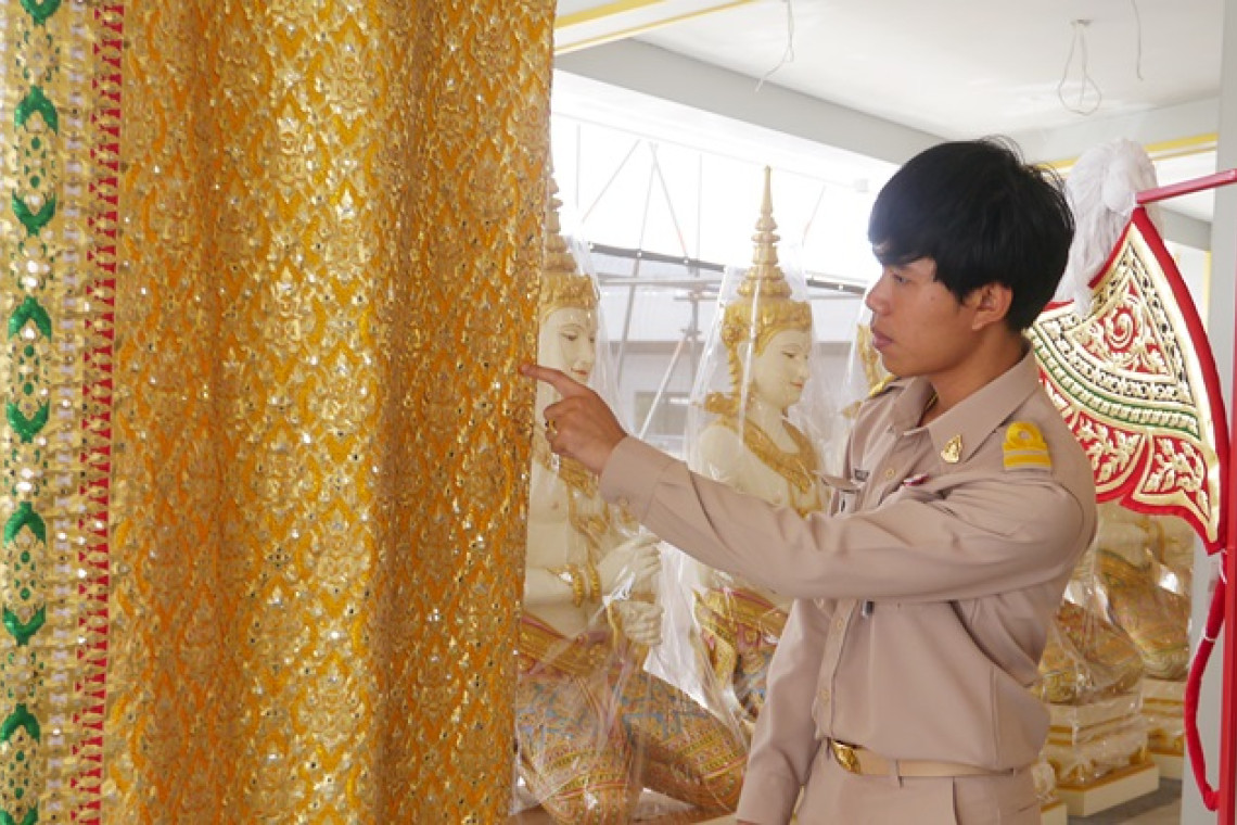 “นายช่างศิลปกรรมปฏิบัติงาน”สำนักช่างสิบหมู่เผยจัดสร้างเครื่องประกอบพระมหาพิชัยราชรถคืบหน้า 70% ธงสามชายงอน 3 ชิ้น เสร็จสมบูรณ์ ผ้าม่านลายเทพพนมประดับบุษบกเสร็จแล้ว 2 ผืน ฉัตร 5 ชั้นผ้าทองแผ่ลวดใกล้เสร็จ