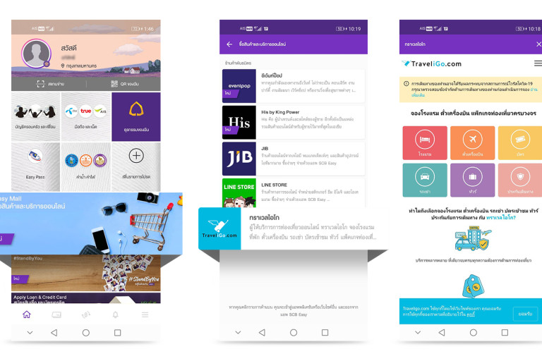 การเชื่อมทราเวลไอโกเข้ากับ SCB Easy App จะมีส่วนการแสดงผลอยู่ในหน้าหลักของ SCB Easy App ลูกค้า SCB ที่ใช้ SCB Easy App แค่เลื่อนหน้าจอลงแล้วคลิกที่แบนเนอร์ “Easy Mall ซื้อสินค้าและบริการออนไลน์” หน้าจอจะแสดงเมนู ทราเวลไอโก ซึ่งเป็นเมนูใหม่ล่าสุด ที่เปิดให้บริการแล้วตั้งแต่ 10 ธ.ค. 63 เพียงแค่นี้ คุณก็สามารถเข้าไปเลือกใช้บริการ จองโรงแรม ซื้อตั๋วเครื่องบิน บริการรถเช่า เลือกซื้อทัวร์ทั้งในประเทศและต่างประเทศ รวมทั้งบัตรเช้าชมสถานที่ท่องเที่ยวต่างๆ ได้ ภายในแอปพลิเคชัน SCB Easy App โดยไม่ต้องออกไปที่ แอปพลิเคชันอื่น