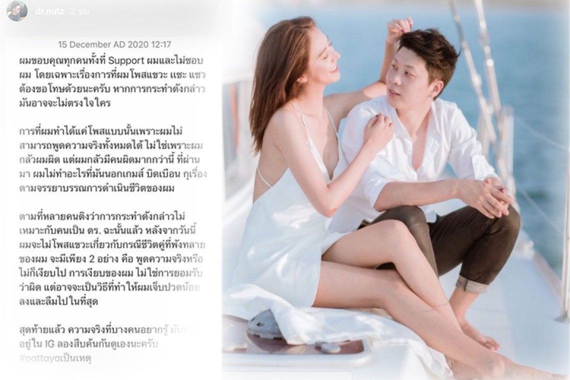 ตามที่หลายคนติงว่าการกระทำดังกล่าวไม่เหมาะกับคนเป็นดร. ฉะนั้นแล้วหลังจากนี้ผมจะไม่โพสต์แขวะเกี่ยวกับกรณีชีวิตคู่ที่พังทลายของผม จะมีเพียง 2 อย่าง คือพูดความจริง หรือไม่ก็เงียบไป การเงียบของผมไม่ใช่การยอมรับว่าผิด แต่อาจจะเป็นวิธีที่ทำให้ผมเจ็บปวดน้อยลงและลืมไปในที่สุด