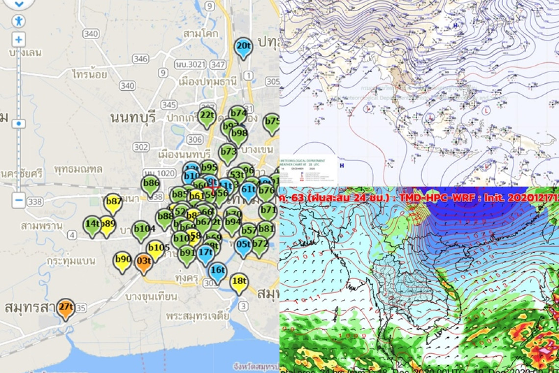 เพจสมควร ต้นจาน กรมอุตุนิยมวิทยา โพสต์ผ่านเฟซบุ๊กระบุ “อัพเดต การพยากรณ์ฝนรายวัน (24 ชม.) 10 วันล่วงหน้า วันนี้ จาก TMD-HPC-WRF Init. 2020121712: บริเวณความกดอากาศสูงหรือมวลอากาศเย็นกำลังค่อนข้างแรงจากประเทศจีนปกคลุมประเทศไทยตอนบนและทะเลจีนใต้ ลักษณะเช่นนี้จะทำให้ประเทศไทยตอนบนมีอุณหภูมิลดลง 1-2 องศาเซลเซียส และมีอากาศเย็นถึงหนาวกับมีลมแรง ส่วนบริเวณยอดดอยและยอดภูมีอากาศหนาวถึงหนาวจัด ขอให้ประชาชนบริเวณประเทศไทยตอนบนดูแลสุขภาพเนื่องจากอากาศที่หนาวเย็นลงด้วย