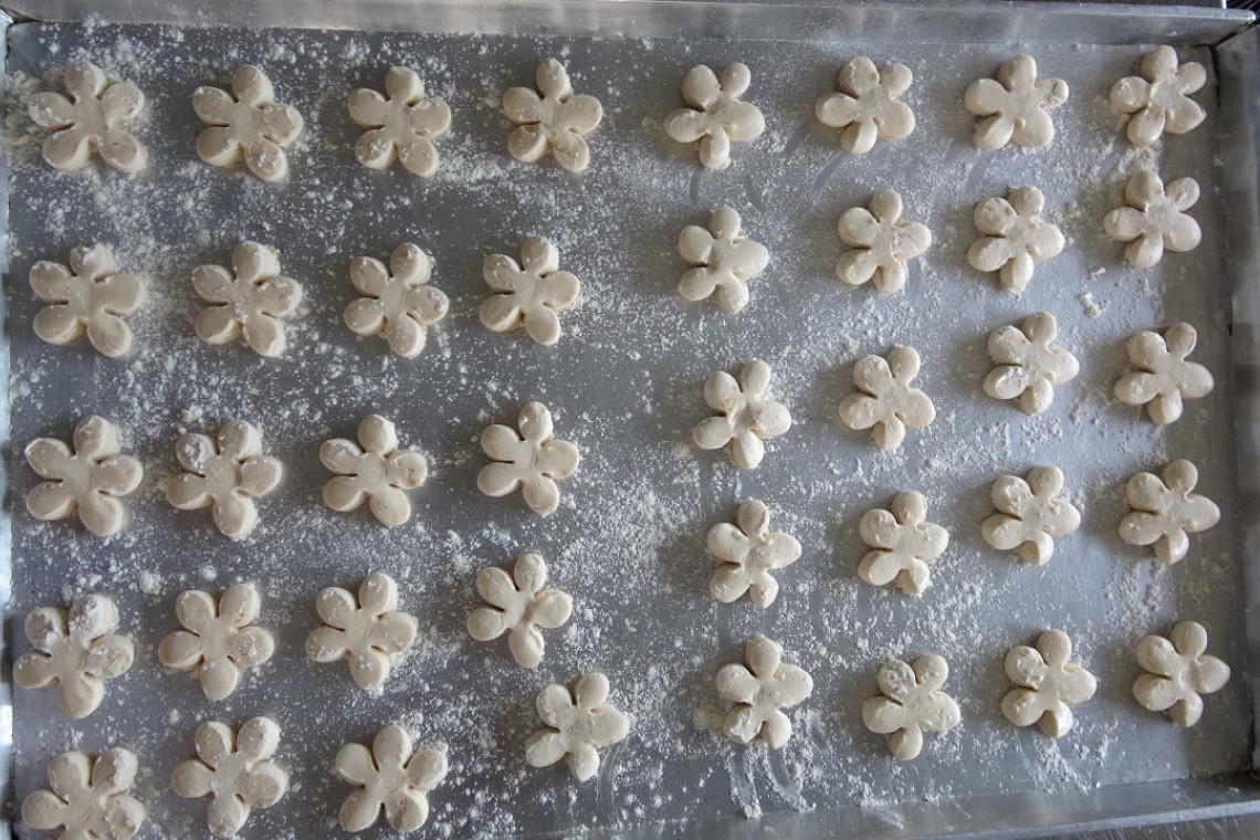 สมาชิกกลุ่มกำลังผลิตขนมผิง หรือโกยบังเกตุ ซึ่งหารับประทานยากเพราะไม่ค่อยมีการทำกินเองในครัวเรือน โดยขนมชนิดนี้ จะใช้แป้งมัน แป้งสาลี ไข่ กะทิ น้ำตาล ผสมกันตามสัดส่วนใช้เครื่องนวดแป้ง เมื่อแป้งเข้ากันดีแล้ว ก็จะปั๊มแป้งเป็นรูปดอกไม้ ก่อนเอาเข้าเครื่องอบ จนได้ขนมผิง หรือโกยบังเกตุที่กรอบเล็กๆนุ่มสมุนลิ้น ให้รสชาติหวานมันจากกะทิ และมีกลิ่มหอม อร่อยยิ่งขึ้นเมื่อกินคู่กับกาแฟ หรือชาร้อนๆ