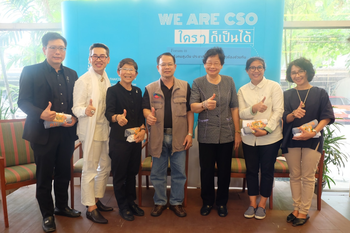 สถาบันส่งเสริมภาคประชาสังคม (สสป.) ร่วมกับภาคีเครือข่ายองค์กรภาคประชาสังคม สมาคมบ้านปันรัก และโครงการสานพลังนโยบายส่งเสริมความเข้มแข็งขององค์กรภาคประชาสังคมเพื่อร่วมขับเคลื่อนสังคมสุขภาวะ ได้ร่วมจัดกิจกรรมรณรงค์สาธารณะ “ WE ARE CSO ” ใครๆ ก็เป็นได้ เพื่อสร้างความเข้าใจบทบาทภาคประชาสังคมกับการมีส่วนร่วมในการพัฒนาประเทศ ด้านต่างๆ โดยจะมีการดำเนินกิจกรรมอย่างต่อเนื่อง ในช่วงระหว่างเดือนกรกฎาคม ถึงธันวาคม 2560 การจัดกิจกรรมครั้งที่ 1 เสนอประเด็น สังคมสูงวัย : ประชาสังคมไทยต้องช่วยกัน จัดขึ้นเมื่อวันที่ 25 กรกฎาคม 2560 ณ ลานกิจกรรม มูลนิธิบ้านอารีย์ ได้มีการเสวนา บทบาทภาคประชาสังคม ในสถานการณ์สังคมสูงวัย ผู้ร่วมเสวนา มาจากตัวแทนภาคประชาสังคม ที่ทำงานหลากหลายประเด็น เด็ก ชุมชน แรงงาน และนักวิชาการ มาร่วมเสนอมุมมอง ผ่านประเด็นงานที่เกี่ยวข้อง สรุปสาระสำคัญการเสวนาดังนี้