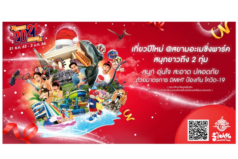 ส่งท้ายปีเก่าต้อนรับปีใหม่แบบสนุก อุ่นใจ สะอาด ปลอดภัย ที่สยามอะเมซิ่งพาร์ค ด้วยมาตรการ DMHT (โดยศูนย์ข้อมูล COVID-19) : เว้นระยะห่าง (Distancing) สวมหน้ากากอนามัย (Mask Wearing) ล้างมือบ่อยๆ (Hand Washing) ตรวจวัดอุณหภูมิก่อนเข้าพื้นที่ (Testing) และควบคุมจำนวนผู้ใช้บริการ สนุกเต็มอิ่ม ไปกับสวนน้ำและเครื่องเล่นระดับโลก พร้อมแชะ แชร์ สีสันแห่งความสนุกช่วงเทศกาลปีใหม่ได้ตั้งแต่ วันที่31 ธันวาคม 2563 –วันที่ 2 มกราคม 2564 ขยายเวลาเปิดให้บริการยาวๆตั้งแต่ 10.00 น. – 20.00 น.
